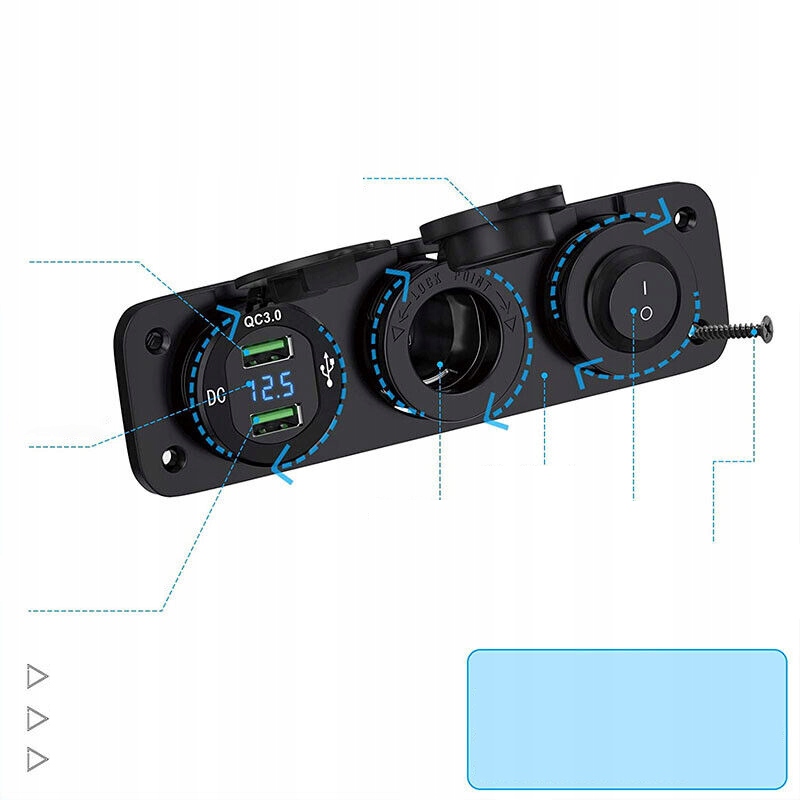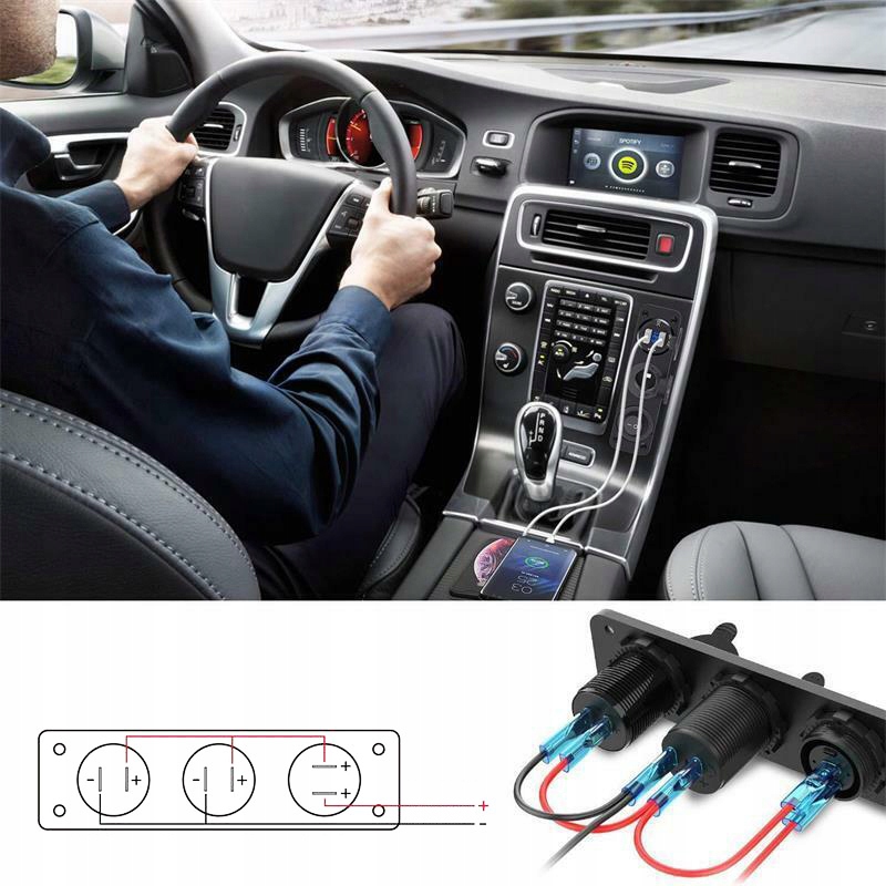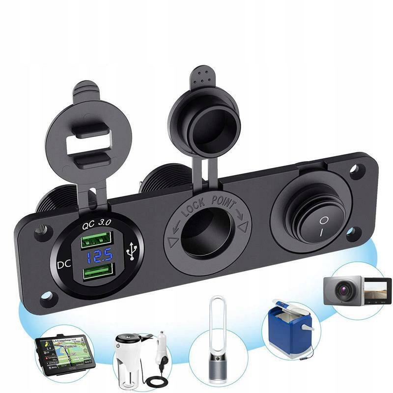 Автомобильная розетка USB QC 3.0 12 В со светодиодным вольтметром, распределителем прикуривателя, независимым выключателем, 2 USB-розетками