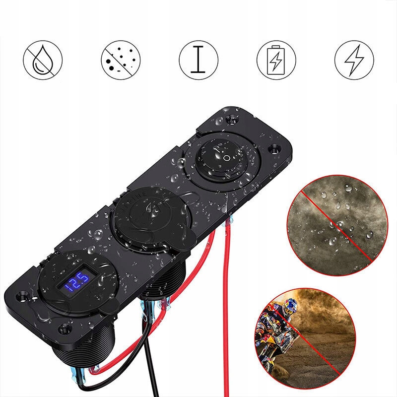 Независимый переключатель.Эта USB-розетка на 12 В оснащена независимым переключателем включения/выключения, что позволяет экономить больше энергии и продлевает срок службы продукта. Оснащен полностью герметичным защитным колпачком для обеспечения водонепроницаемости и пыленепроницаемости.