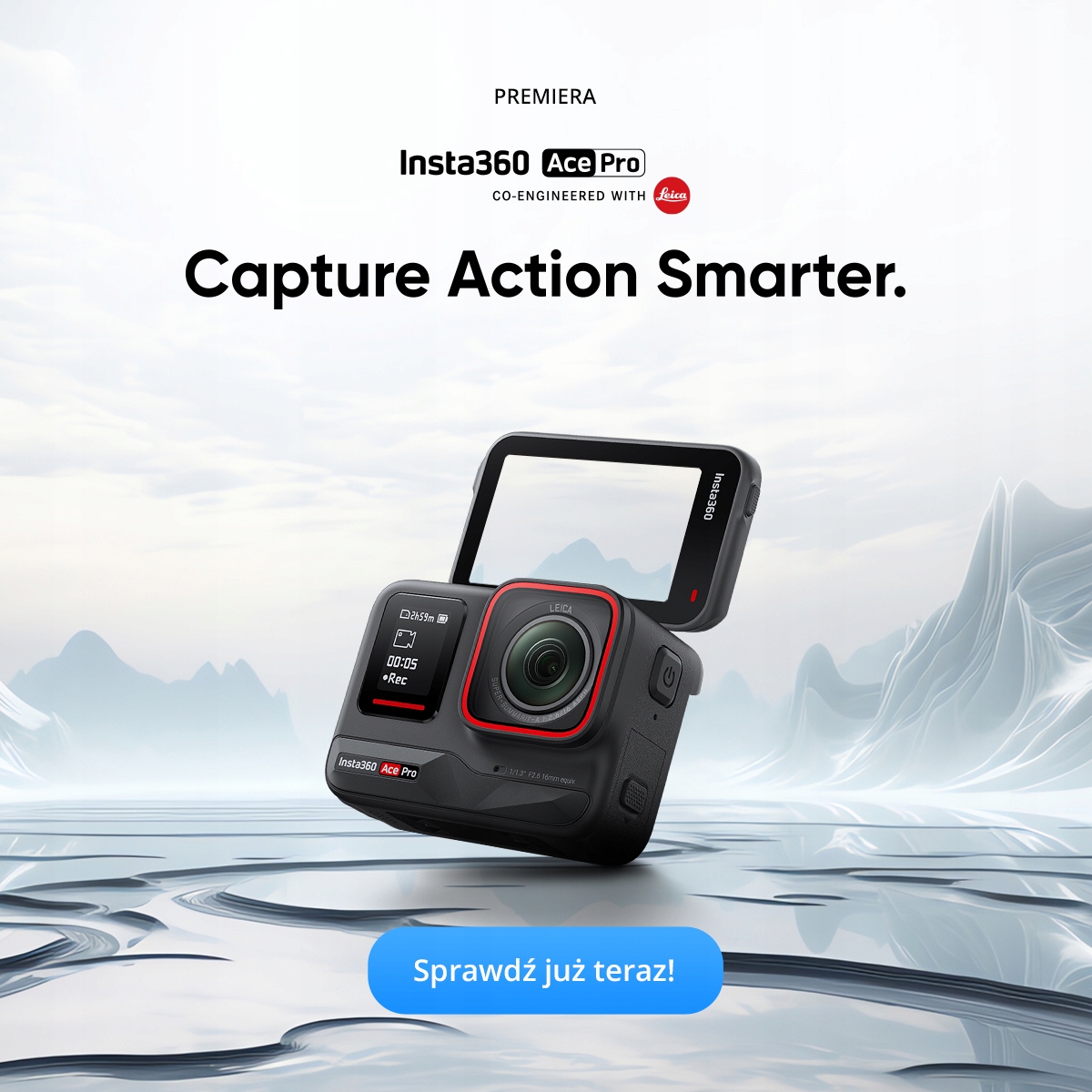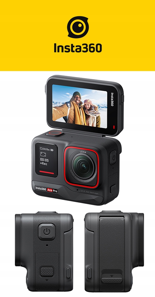 Вы ведете активный образ жизни? Вы ищете спортивную камеру, которая справится с любыми задачами? Insta360 Ace Pro станет настоящим хитом! Устройство создано в сотрудничестве с известным производителем фотоаппаратов Leica — благодаря матрице 1/1,3 дюйма оно позволяет записывать качественные видеоролики 8К и делать фотографии 48 Мп. Идеален даже в условиях плохого освещения! Камера также оснащена 2,4-дюймовым наклонным сенсорным экраном и водонепроницаемым корпусом — ее можно безопасно погружать на глубину до 10 м. Insta360 Ace Pro также использует искусственный интеллект, чтобы вам было проще записывать и редактировать видеоматериалы.