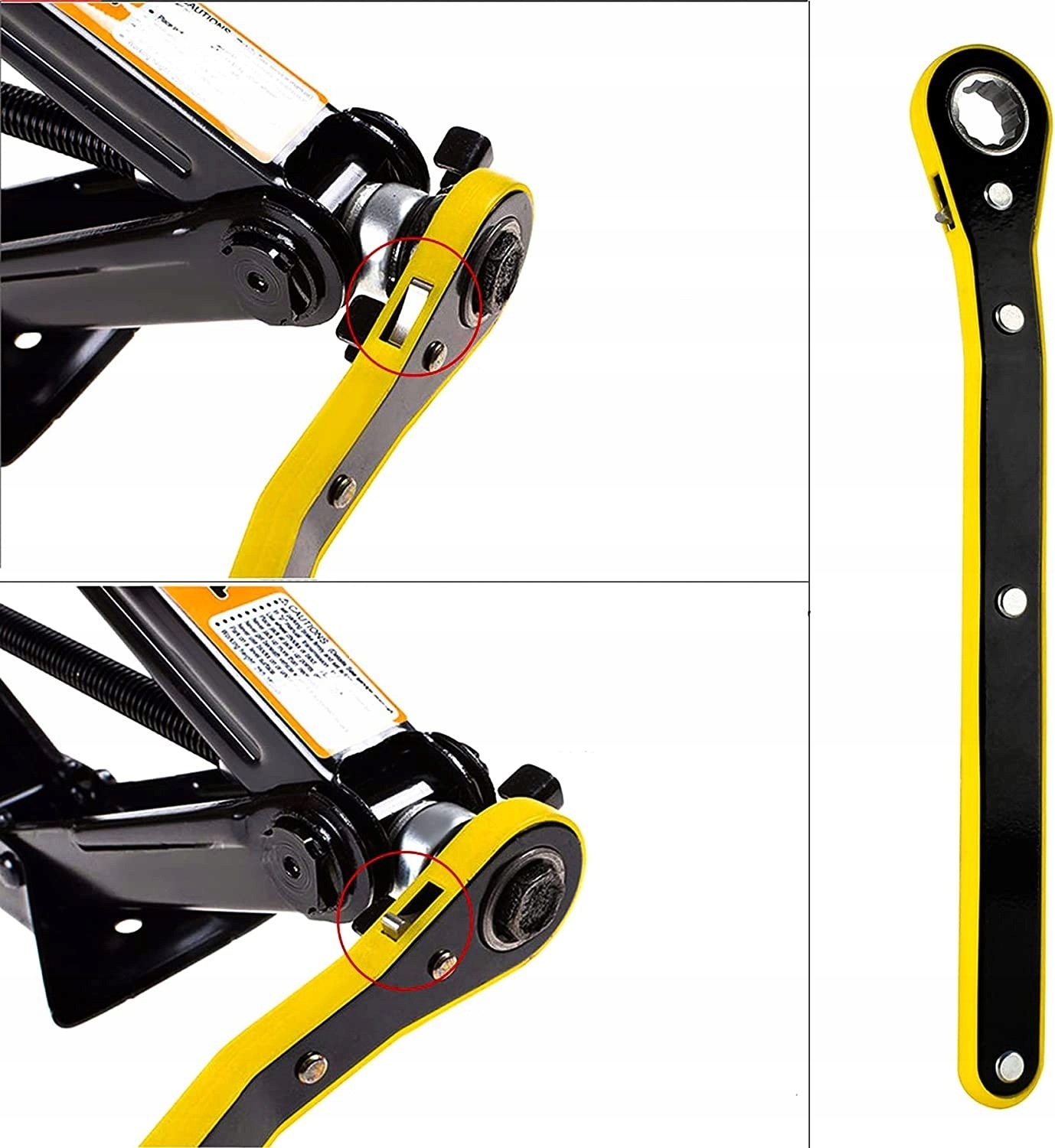 В отличие от других домкратов, он очень экономит трудозатраты и позволяет легко поднять автомобиль с земли с помощью прилагаемого ключа для таких работ, как замена шины.