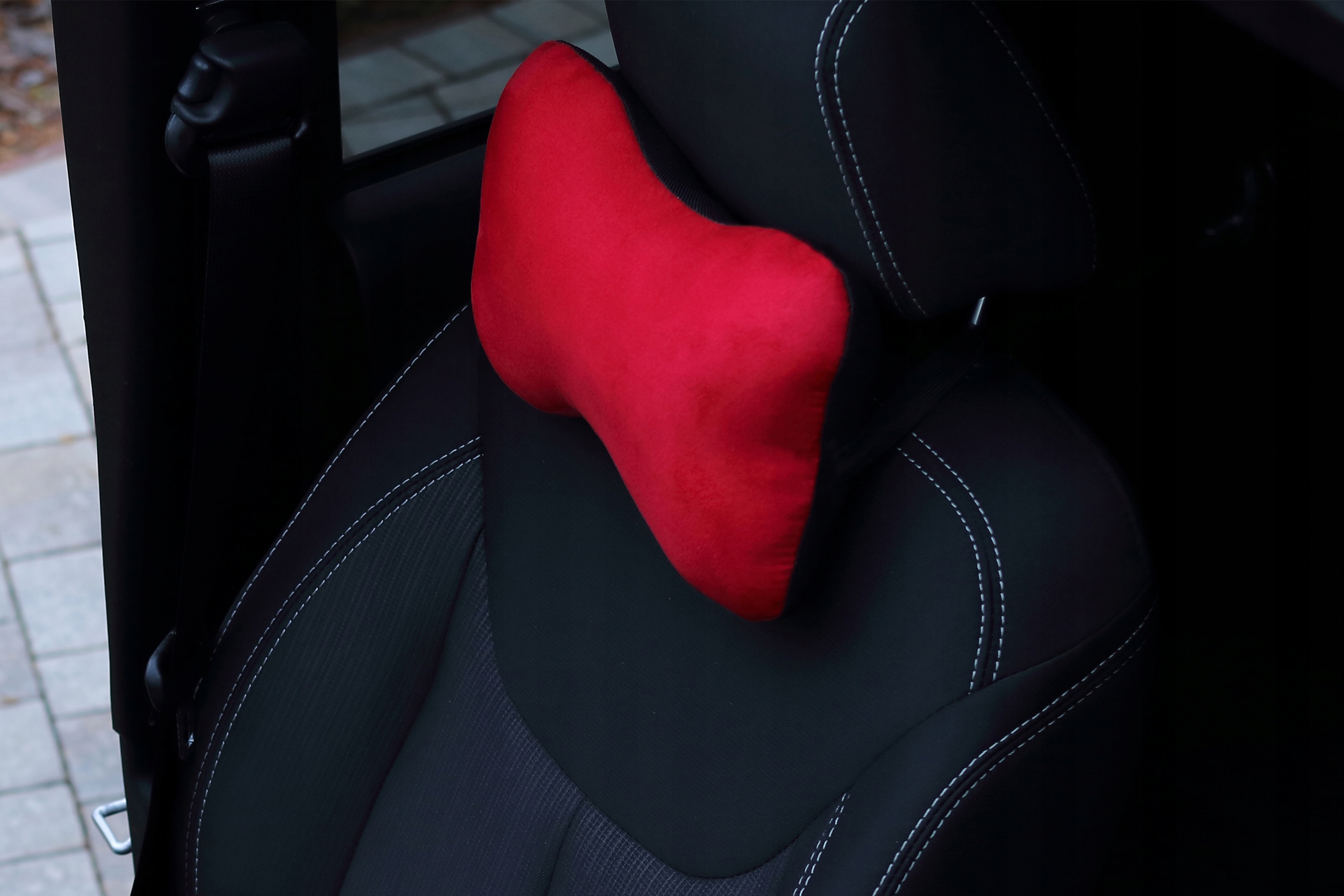 Подушка имеет эластичную резинку для крепления на подголовнике кресла.