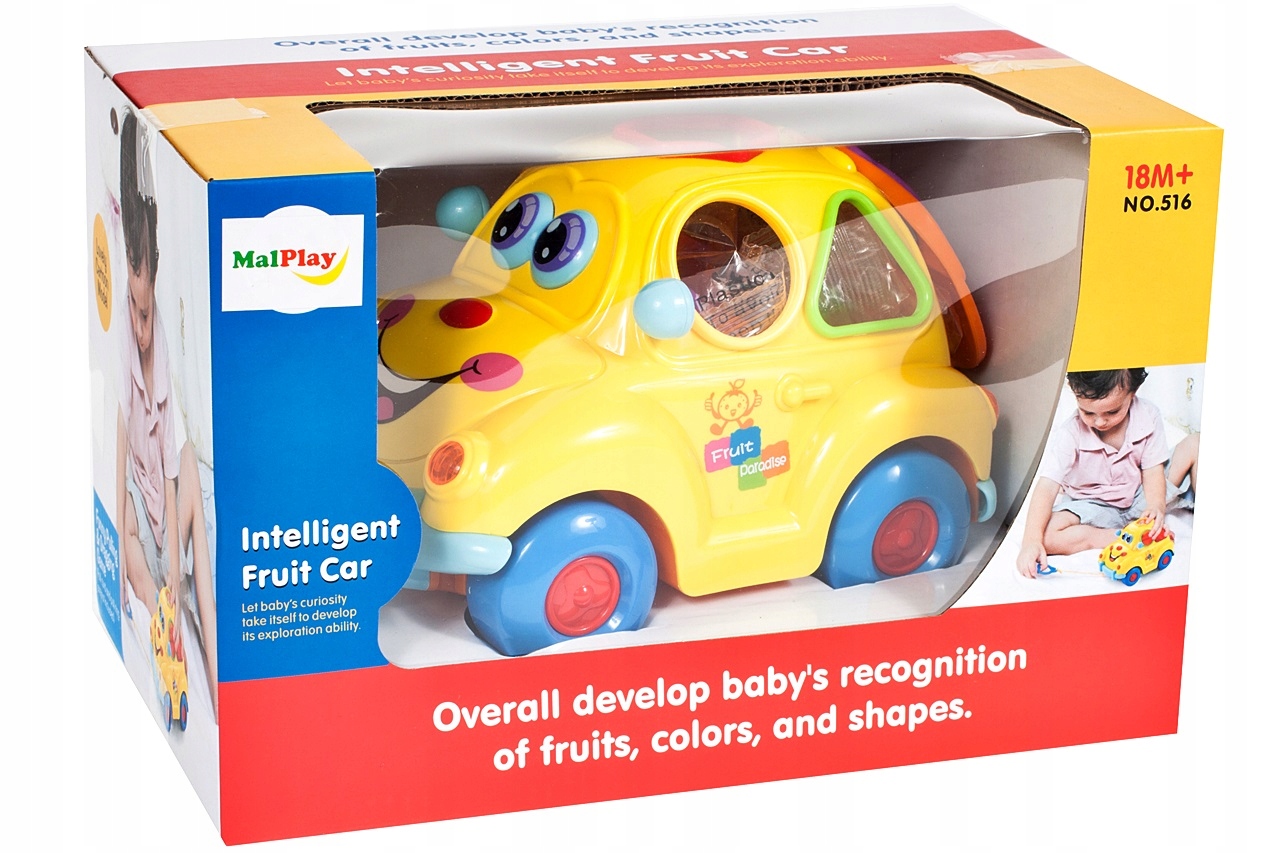 Машина едет, отскакивает от препятствий, меняет направление, имеет элементы освещения, во время движения слышна веселая музыка.