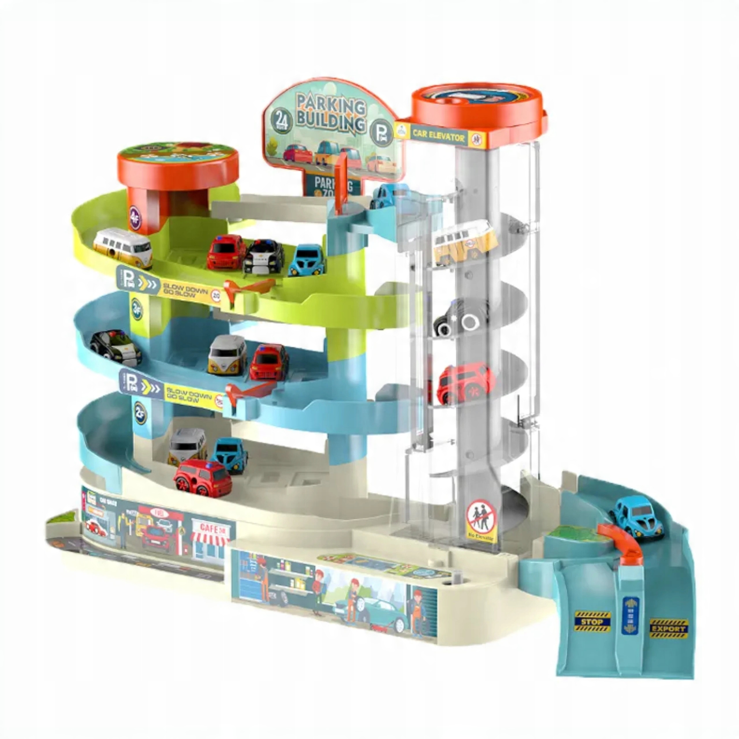 Автомобильная полоса препятствий, горка с машинками, лифт, парковка