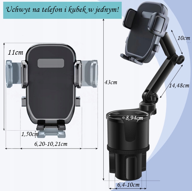 Практичный автомобильный держатель, сочетающий в себе функции устойчивого держателя для телефона и места для напитка. Благодаря этому решению вы сможете безопасно пользоваться навигацией и всегда иметь под рукой кофе, бутылку воды или термокружку.
