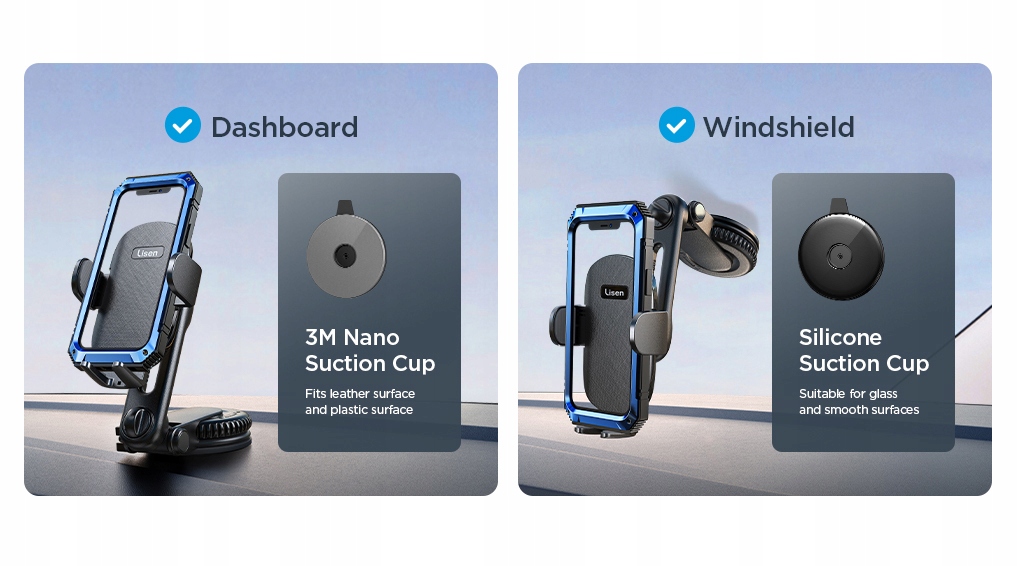 Lisen H736 – самый прочный автомобильный держатель телефона 3-в-1 для вентиляционного отверстия и кабины/окна, в комплект входят две специализированные присоски, полностью регулируемый!