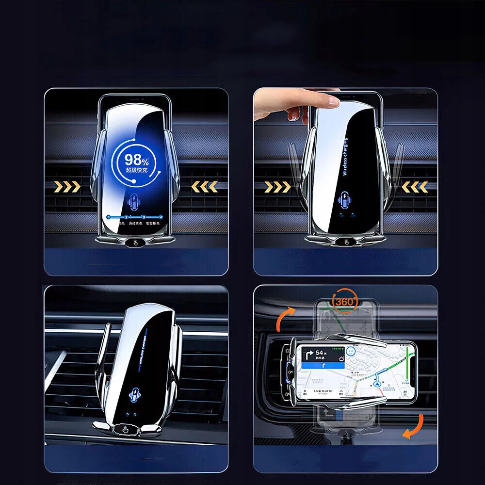 ✅【Автозажим】 Этот умный автомобильный держатель просто помещает ваш телефон в держатель. Беспроводное автомобильное зарядное устройство автоматически фиксируется, когда телефон падает в соединительный кабель.