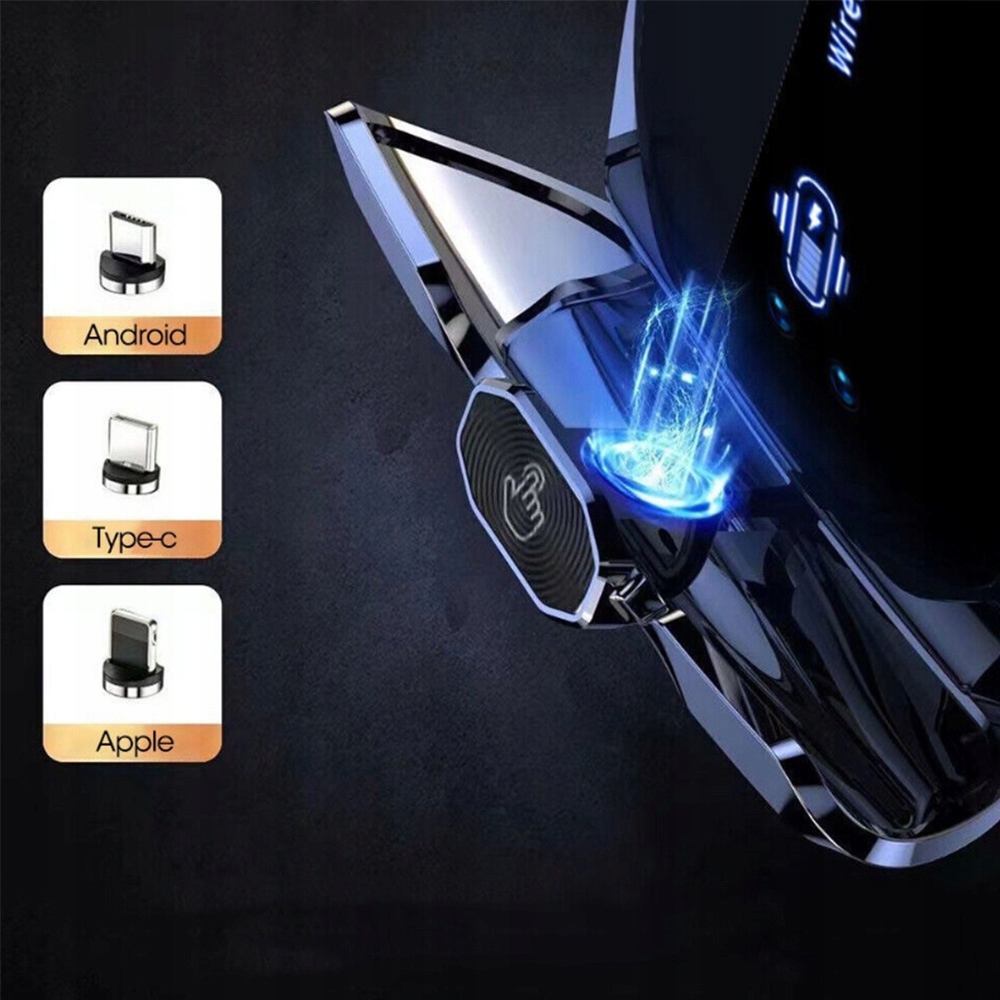 Этот умный автомобильный держатель просто вставляет ваш телефон в держатель. Беспроводное автомобильное зарядное устройство автоматически фиксируется, когда телефон падает в соединительный кабель.