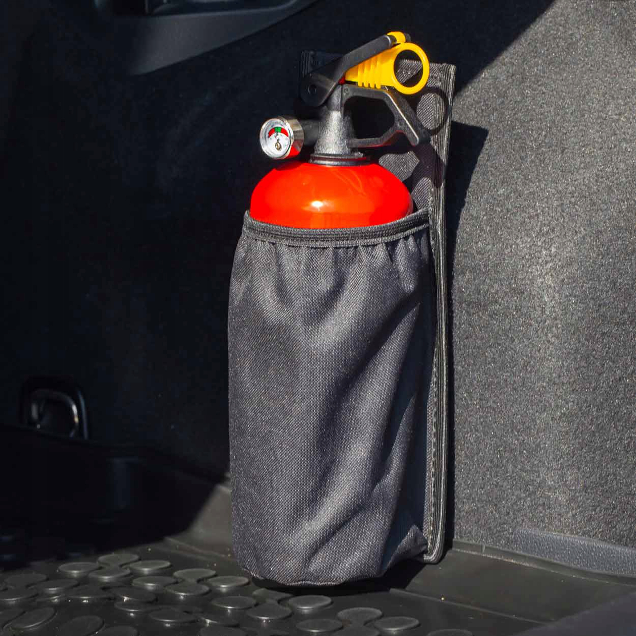 Оснащенный практичной застежкой-липучкой, чехол можно свободно прикрепить к стенкам или полу багажника, обеспечивая устойчивость и безопасность огнетушителя.