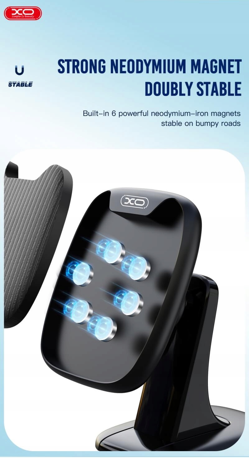 Автомобильный держатель XO — идеальное решение для вашего автомобиля. Благодаря большой регулировке кронштейна от 11 до 26,5 см мы можем настроить его в соответствии с индивидуальными потребностями.