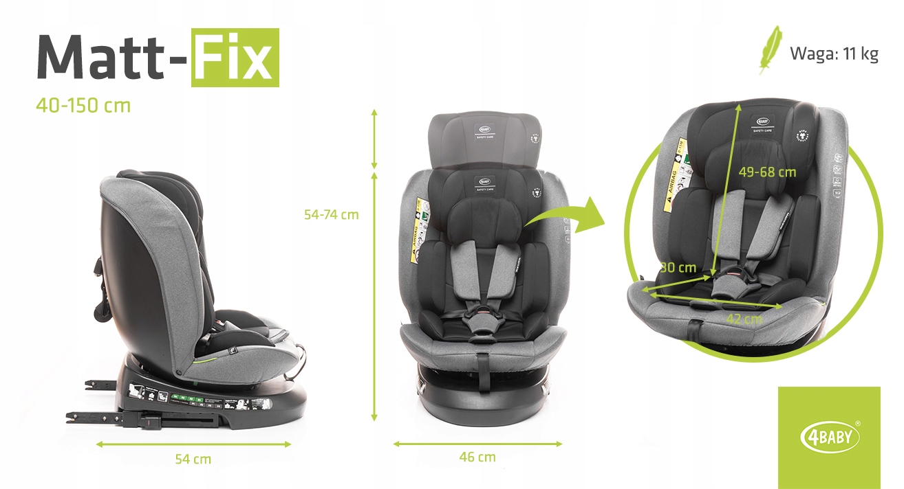 matt-fix matt-fix . Роторная платформа, работающая в диапазоне 360 ° градусов. Это позволяет вам установить сиденье на два уровня - Front и задний направление для направления (RWF), а также удобное прикрепление ребенка к сидению, а также удаление его с автомобиля (установка в сторону).✅ Сиденье обеспечивает самый высокий уровень Comfort 40-150 см (0-36 кг, одно автомобильное сиденье для всего использования периода).