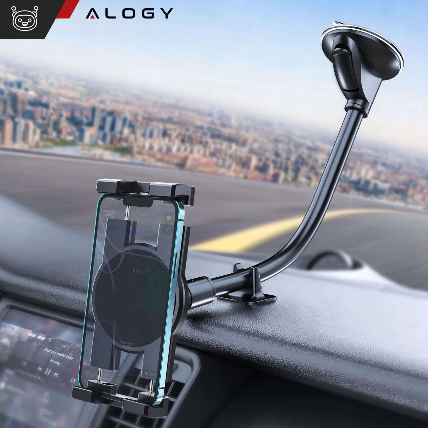 ▶️ Автомобильный держатель для планшета на стекло кабины Alogy для автомобиля с длинным кронштейном 4-13" черный
