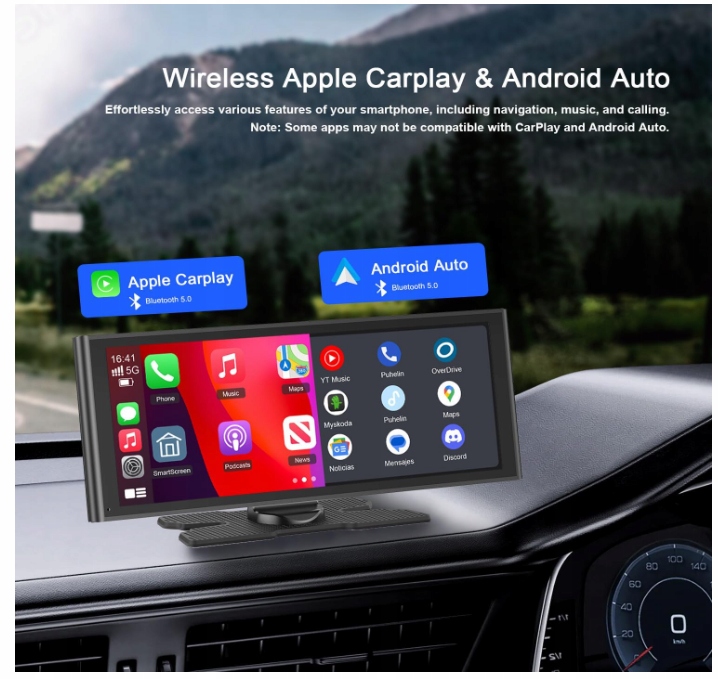 - Полная интеграция с Apple CarPlay и Android Auto - подключение без кабелей, используйте навигацию, музыку и соединения в одном месте.