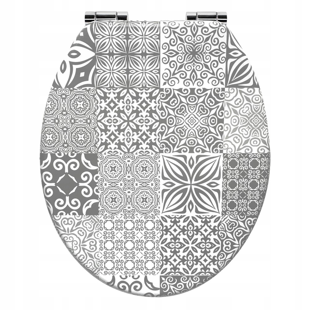 Сиденье для унитаза ARTE изготовлено из прочного и прочного МДФ. Верх и низ клапана украшены оригинальным геометрическим мозаичным узором белого и серого цвета. Сиденье осталось в традиционном белом цвете. Он оснащен петлями, оснащенными системой свободного падения, что делает его бесшумным и безопасным в использовании. Сиденье для унитаза поставляется с установочным комплектом.