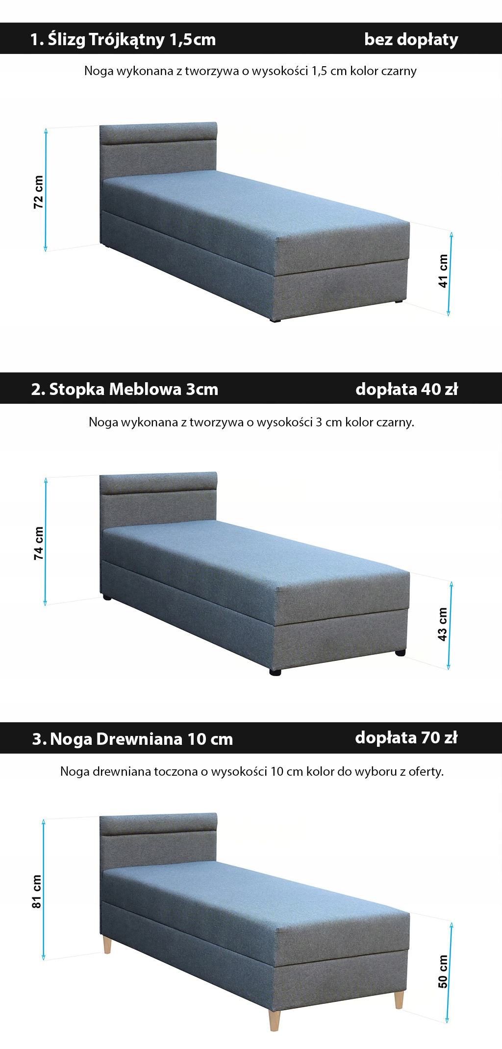 Если вы хотите купить эту кровать с нестандартными ножками (мебельная ножка 3 см или деревянная ножка 10 см), найдите подходящее предложение в наших товарах - коды товаров указаны ниже.