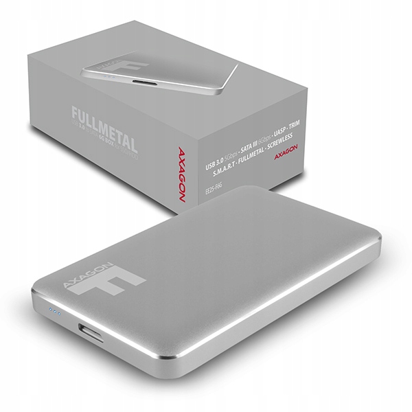 AXAGON EE25-F6B FULLMETAL BLACK цельнометаллический внешний корпус с интерфейсом USB 3.0 и SATA 6G, предназначенный для 2,5-дюймовых долговечных накопителей SATA или SSD.