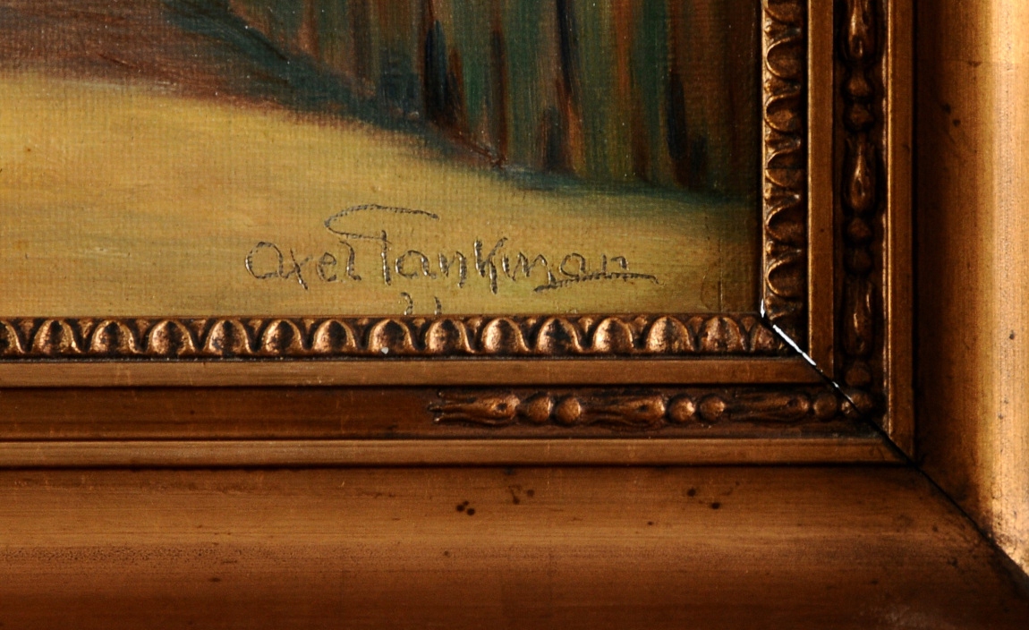 - В правом нижнем углу подпись Художника - Аксель Танкмар и год (частично закрытый полосой рамки), в котором написана картина. была написана.