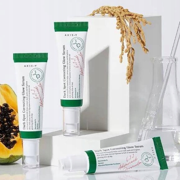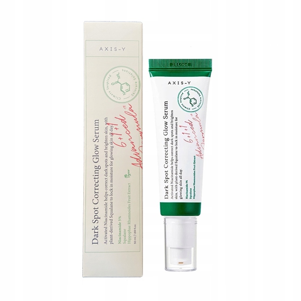 Axis-Y Dark Spot Correcting Glow Serum — усовершенствованная сыворотка, созданная для ухода за кожей с обесцвеченными пятнами. Формула содержит 5% ниацинамида, обладающего антиоксидантными и осветляющими свойствами. Глутатион помогает осветлить пигментные пятна, а гиалуронат натрия смягчает, придает эластичность и разглаживает кожу. Сквалан питает, а аргинин интенсивно увлажняет кожу.