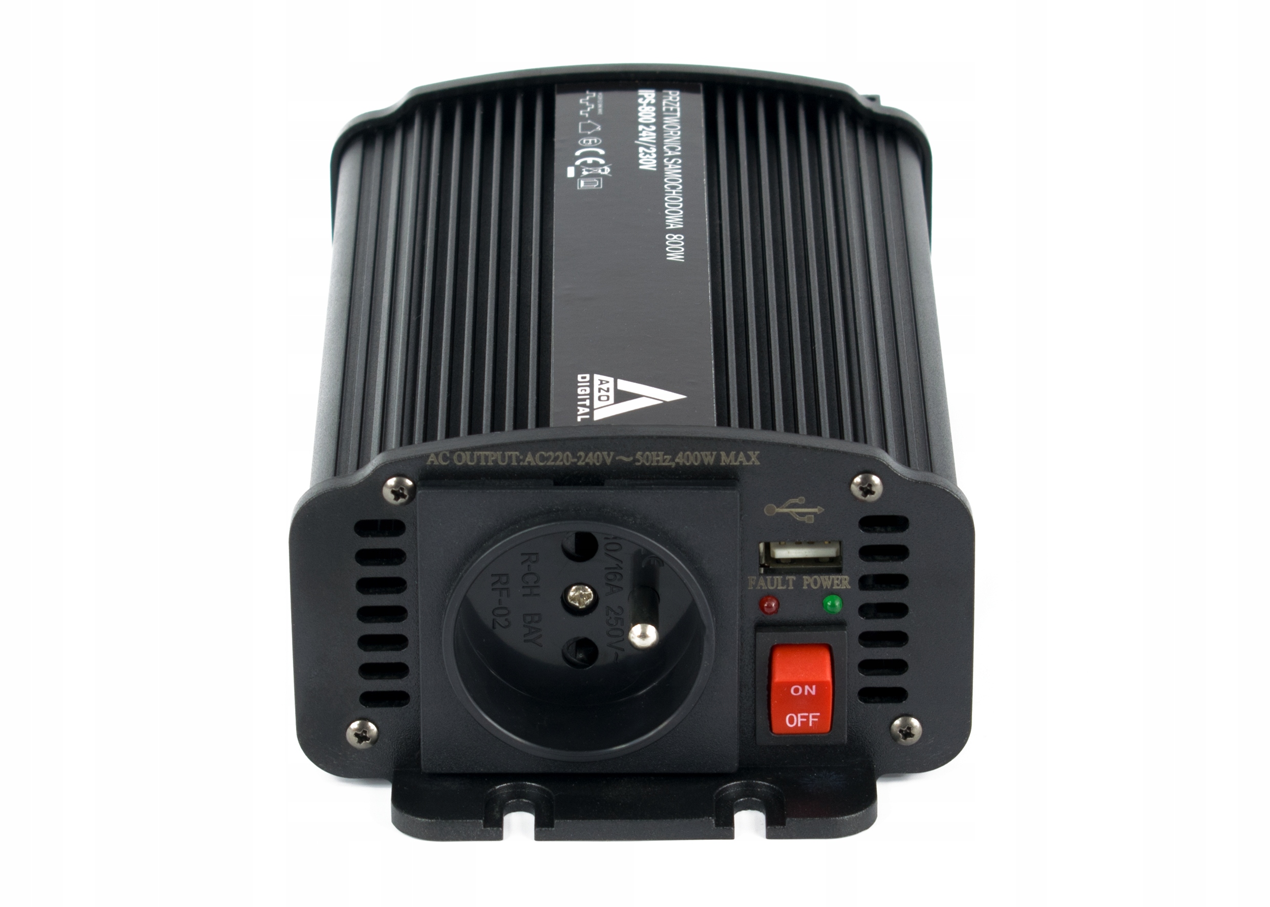AZO IPS-800 позволяет подключать устройства 230В в сети 24В (например, в грузовых автомобилях, сельскохозяйственных тракторах и т.п.).