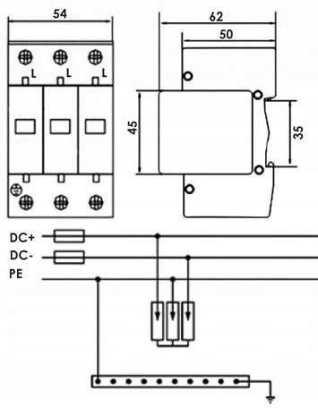 B + C 4P 3F ограничитель перенапряжения T1 + T2 перенапряжение