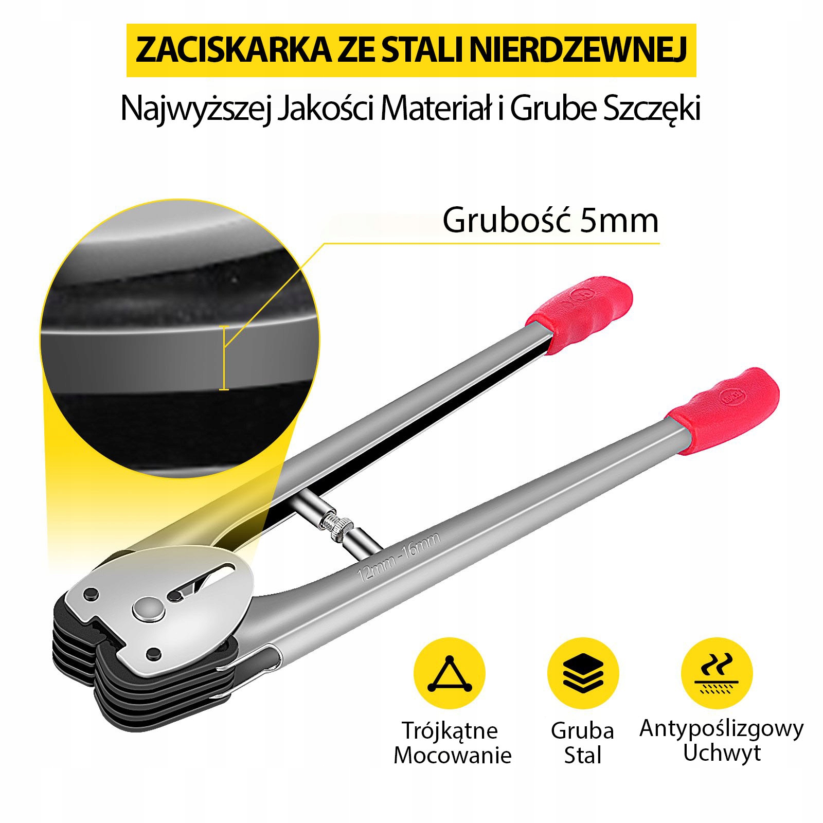 Зажимные клещи (щипцы) — простое ручное приспособление, используемое в процессе обвязки грузов. Их задача — создать прочную застежку, загнув металлическую застежку вокруг обоих концов соединяемой ленты. Данному способу крепления посвящены так называемые ленты. пластик, то есть полипропилен ПП и жесткий полиэстер ПЭТ.