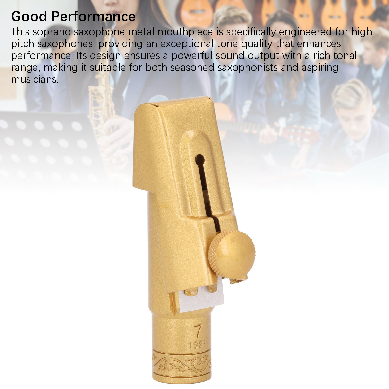 4. Хорошая производительность: этот металлический мундштук для саксофона сопрано был специально разработан для высоких саксофонов, обеспечивая исключительное качество звука, которое повышает производительность. Его дизайн обеспечивает сильный звук с богатым тональным диапазоном, благодаря которой он подходит как для опытных саксофонистов, так и для начинающих музыкантов.
