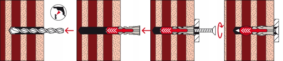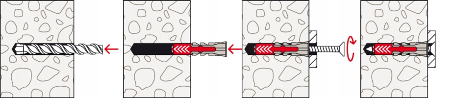- Сочетание двух разных материалов дюбелей влияет на их разнообразные свойства (расширение, складывание и петлеобразование), что позволяет использовать их в дополнительных основаниях и получать высочайшую несущую способность.