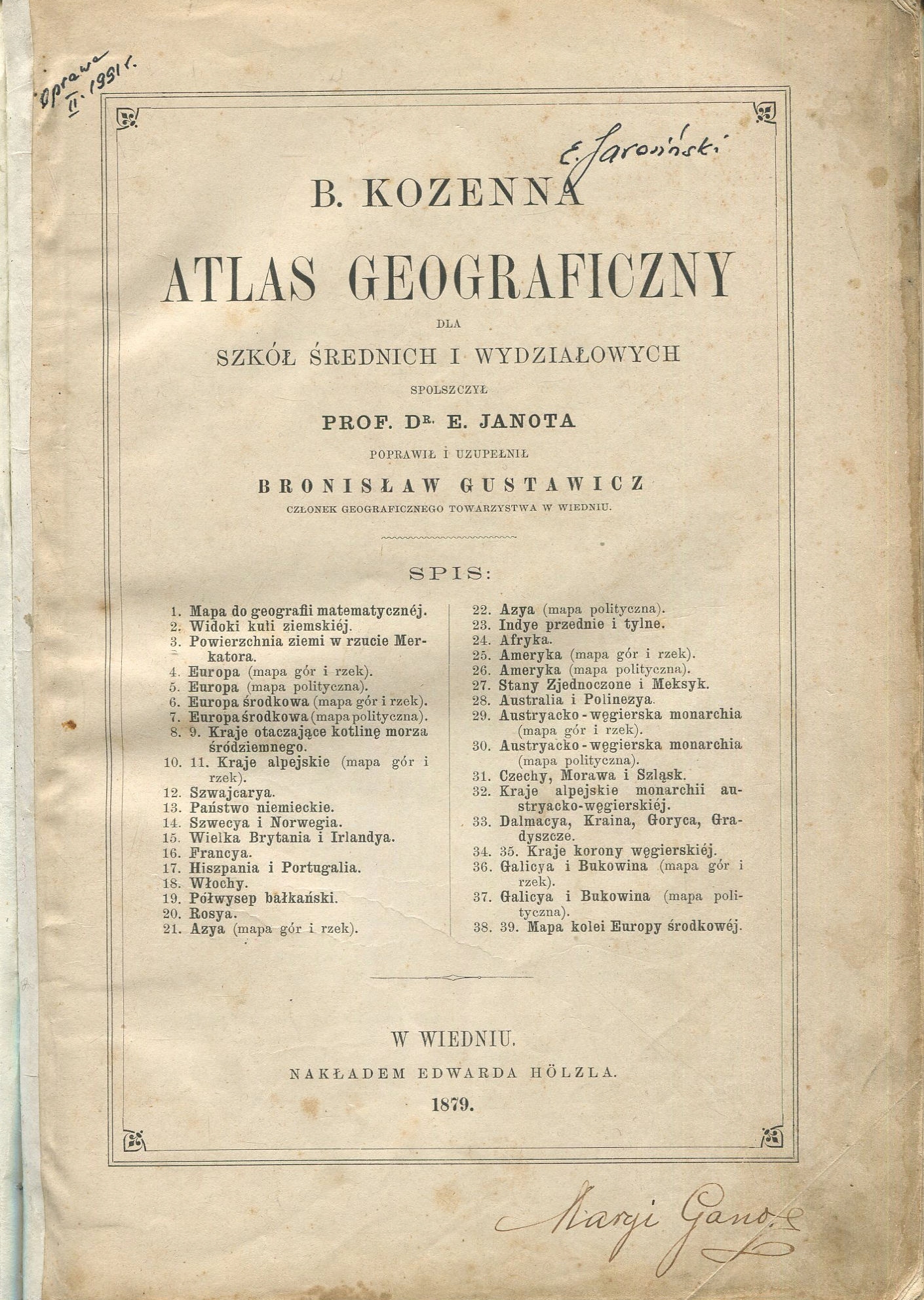 Б. Козенна Географический атлас Вена [1879] 35 карт