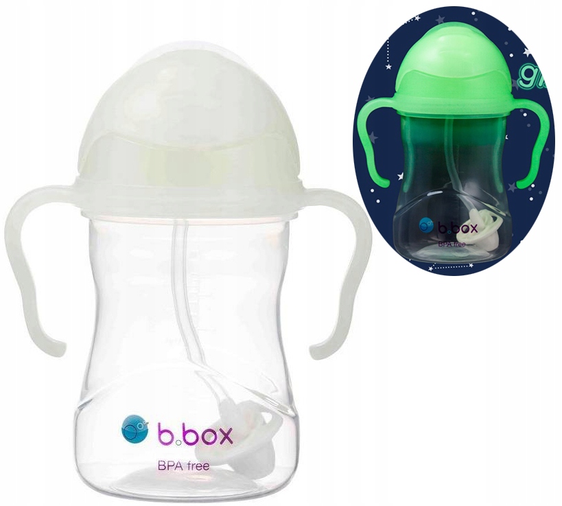 Инновационная бутылка-непроливайка b.box с утяжеленной соломинкой, которая «следует» за жидкостью. Теперь в новой, увлекательной версии «Светится в темноте», то есть флаконе bbox, который светится в темноте. Ее вместительность и технические решения делают ее очень практичной первой чашкой для ребенка. Светящаяся крышка облегчает поиск в темноте.