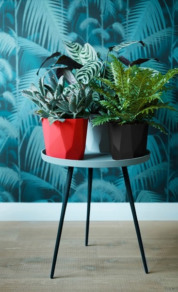 Декоративный вазон с геометрическим узором. Матовое покрытие придает теплый вид и фантастический эффект теней. Изготовлен из высококачественного пластика.
