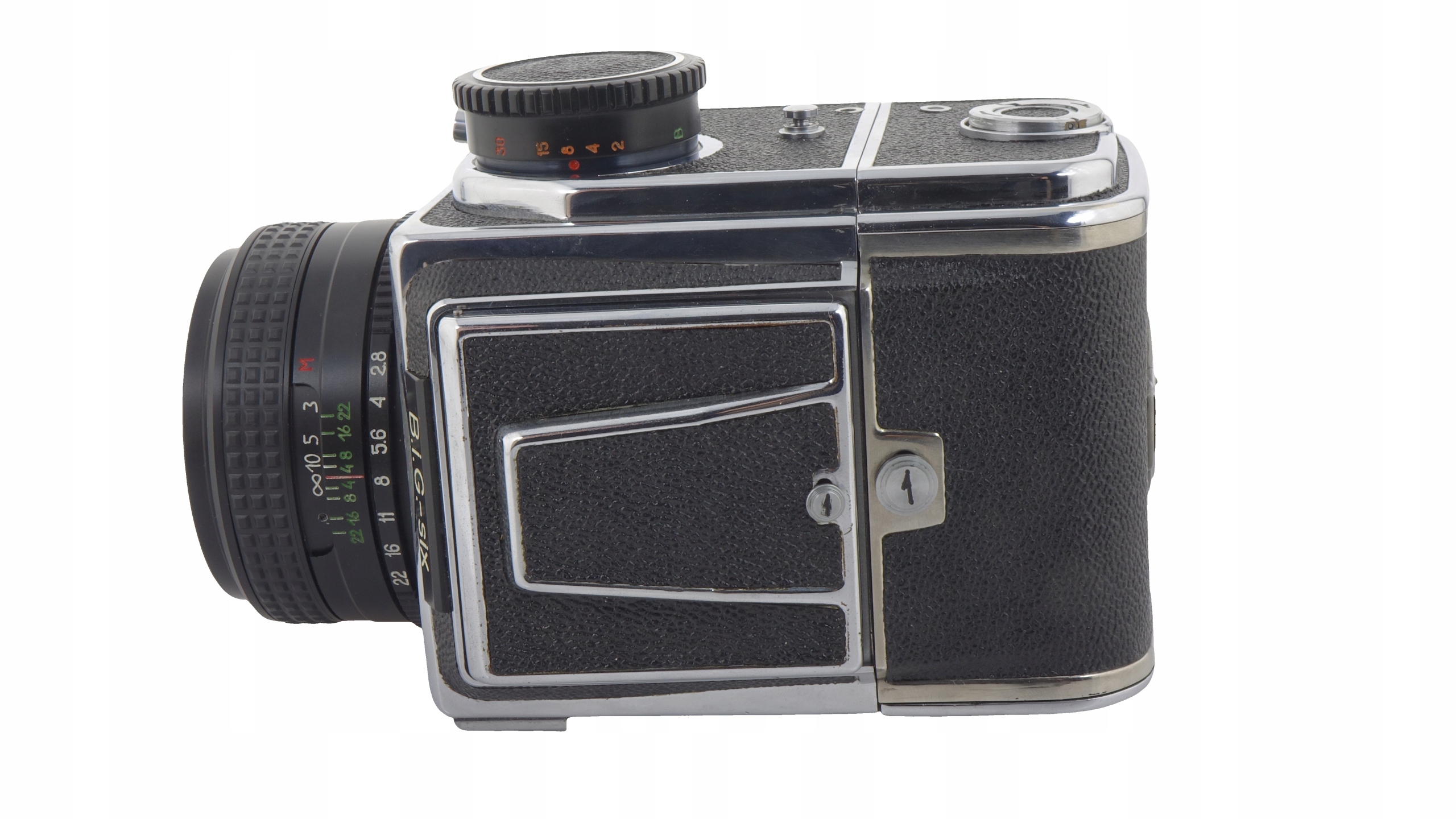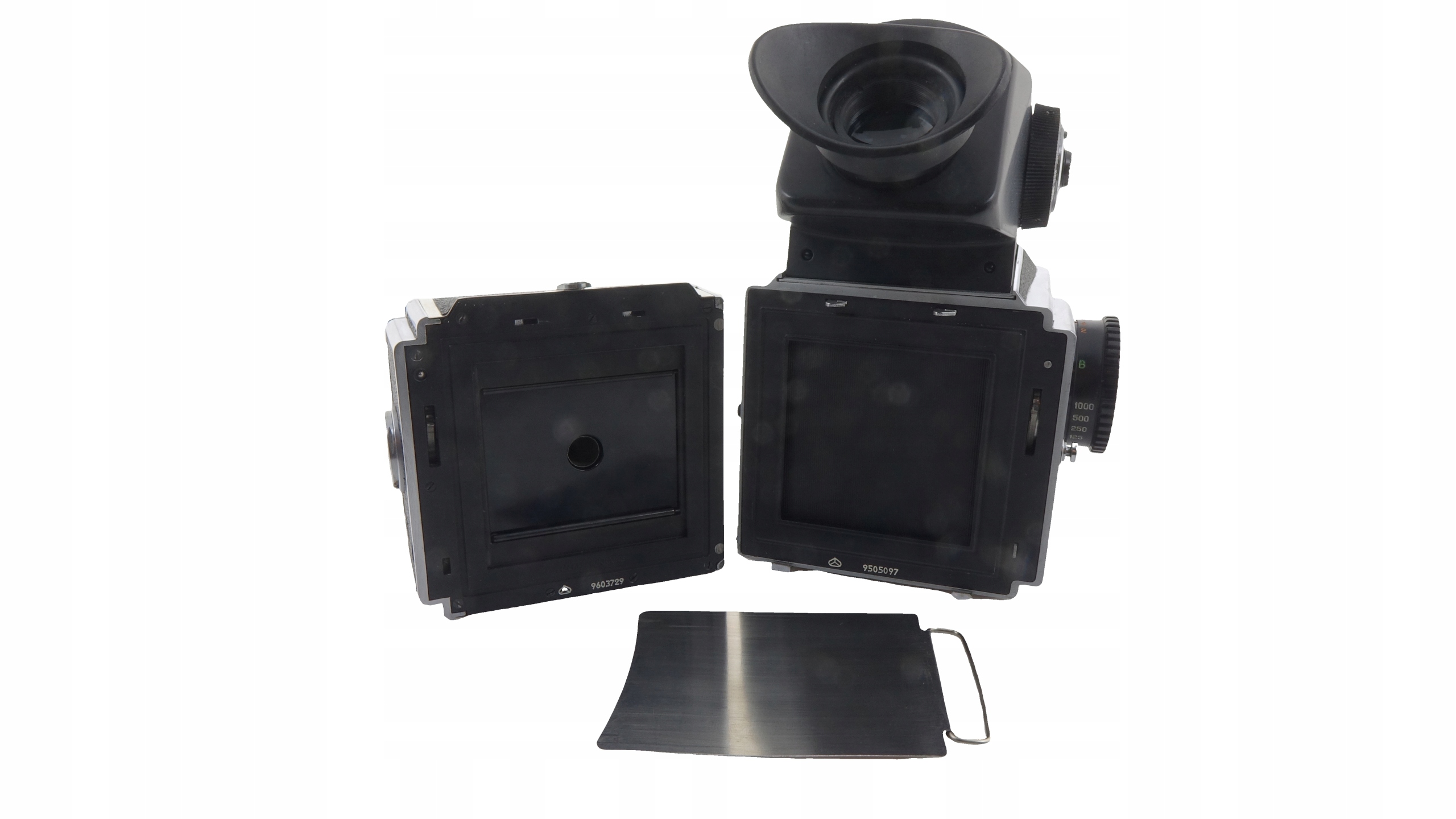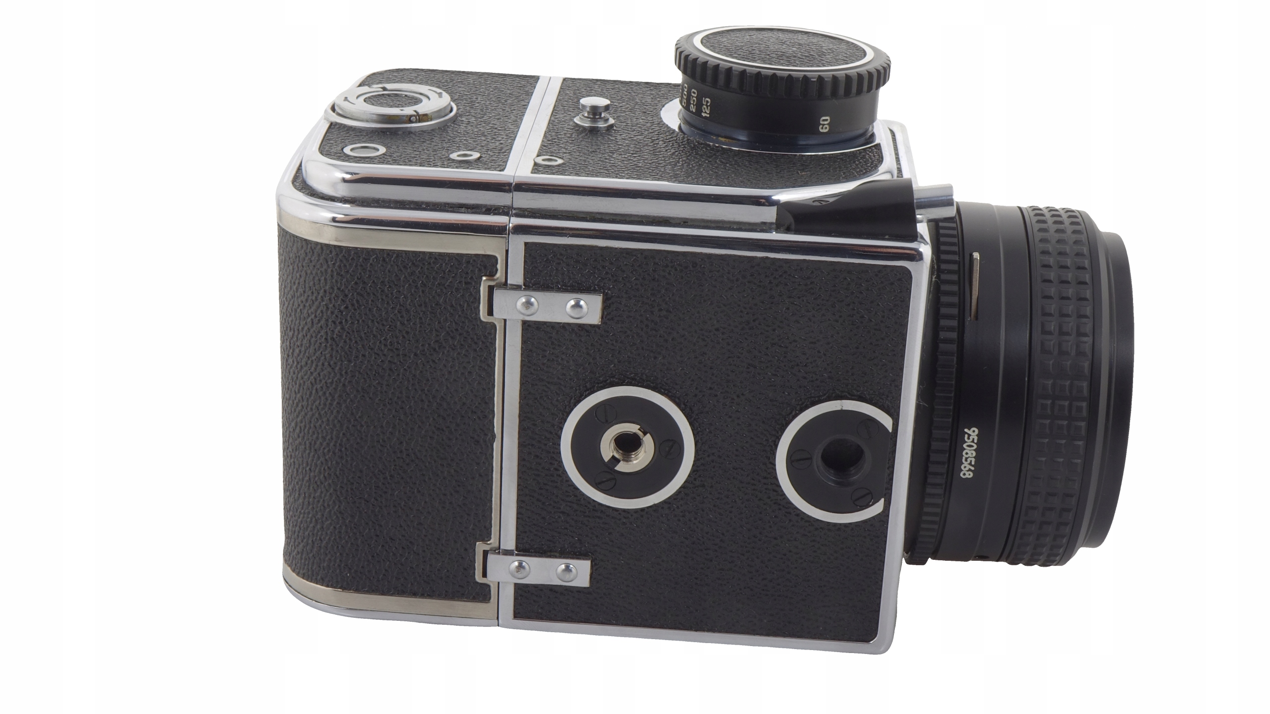 Очень редкая немецкая версия камеры среднего формата Kiev 88, также вдохновленная камерой Hasselblad 1000F. Pentacon Six Actadment, это одно -лин с полным оборудованием, которое включает в себя как 6x6, так и 6x4,5, два оригинальных фильтра, партнер с клинком, призму TTL и камин с увеличительным стеклом. искусственный.