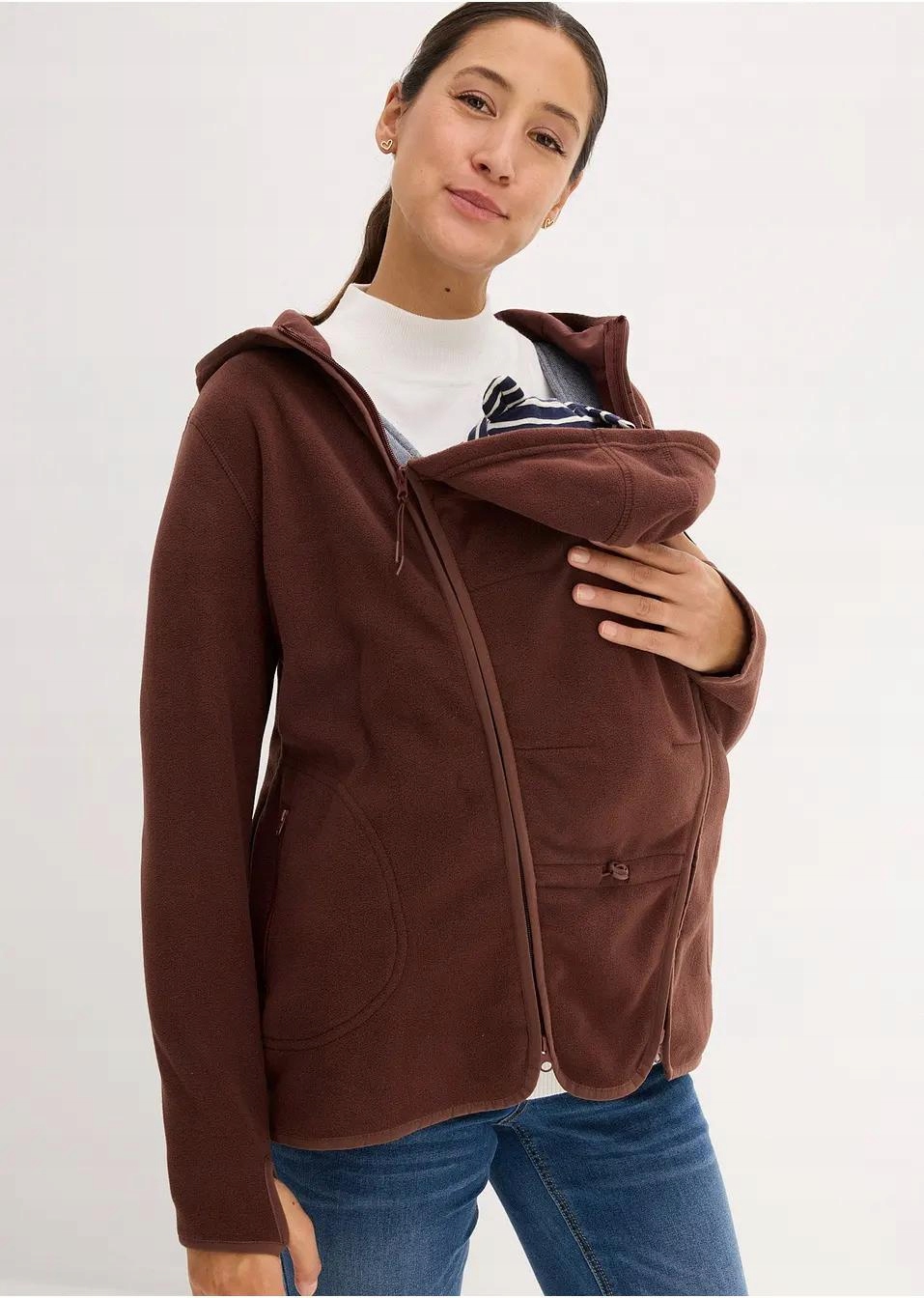 ФЛИСОВАЯ ТОЛСТОВКА С ДЕТСКОЙ ВСТАВКОЙ КОРИЧНЕВАЯ ПЛЮС РАЗМЕР IXT BONPRIX 50