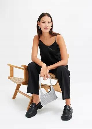 B.p.c ЖЕНСКИЙ БЛЕСТЯЩИЙ ТОП НА РЕМЕШКАХ, ЧЕРНЫЙ БАЗОВЫЙ fxv 40