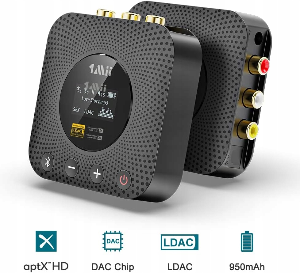 Приемник 1Mii Bluetooth 5.1 B06HD+ — Bluetooth-адаптер высокого разрешения с LDAC aptX HD и aptX LL, регулятор громкости на OLED-экране, беспроводной аудиоадаптер для AV-усилителя/ресивера