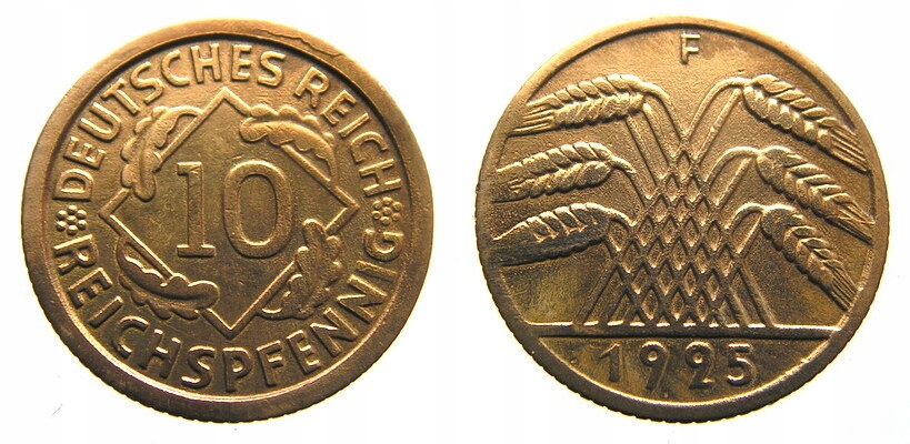 B270. НІМЕЧЧИНА, 10 REICHSPFENNIG 1925 F ST.1-