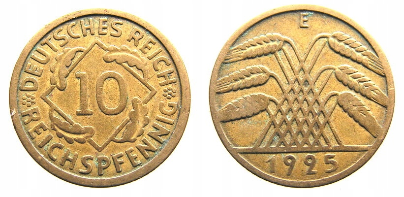 B433. НІМЕЧЧИНА, 10 REICHSPFENNIG 1925 E