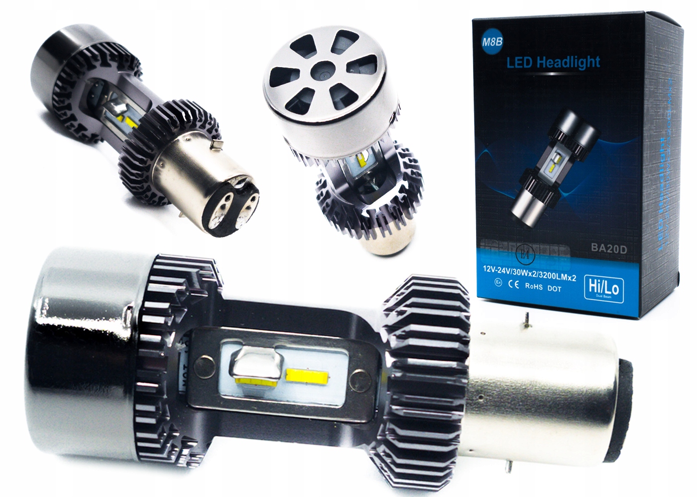 BA20D LED ЛАМПА 60W 6400lm МОТОР МОТОЦИКЛА СКУТЕРА