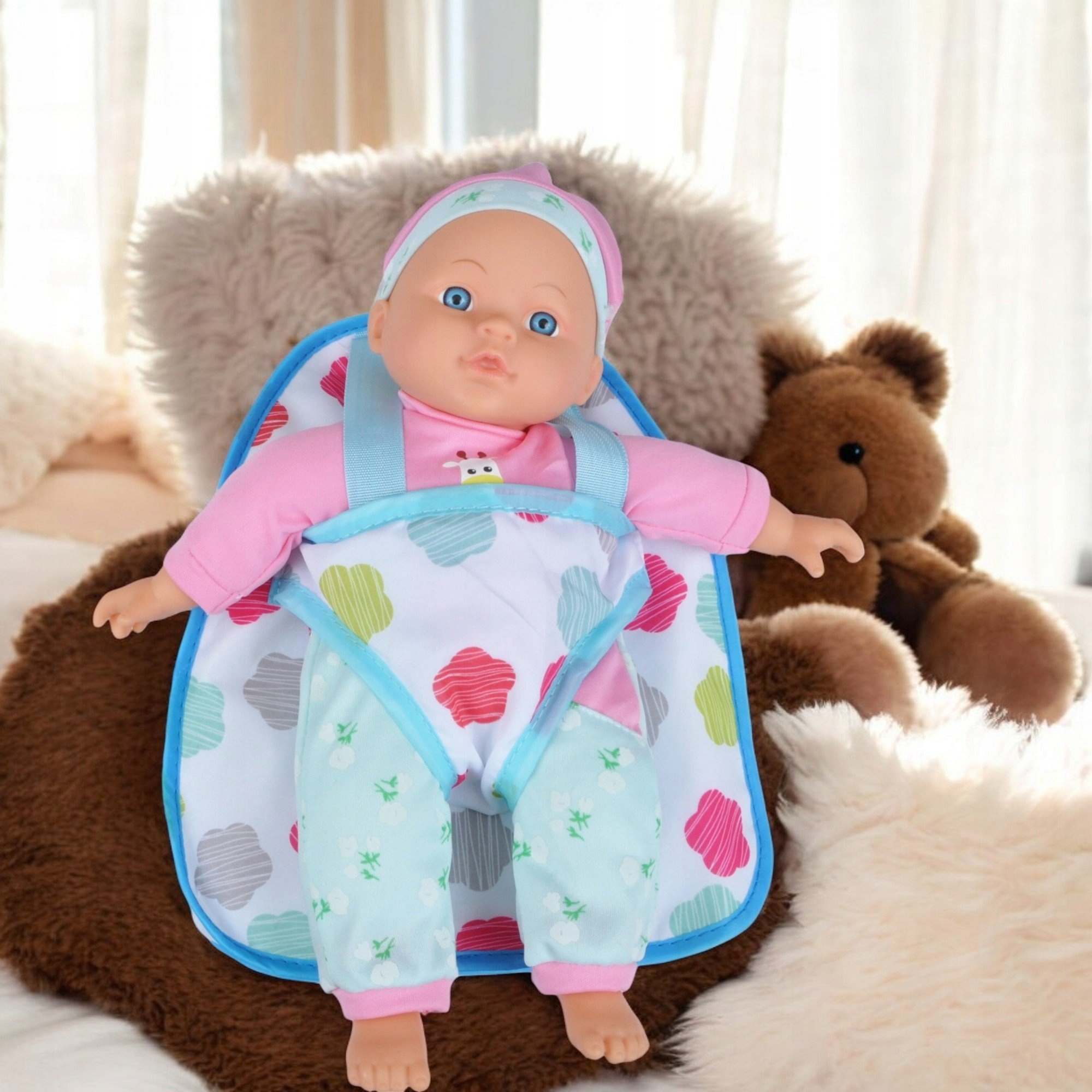 КУКЛА РЕЗИНОВАЯ ДЛЯ ДЕТЕЙ, МАЛЫШКА С РЮКЗАКОМ, ПЕРЕНОСКА, ПОДАРОК