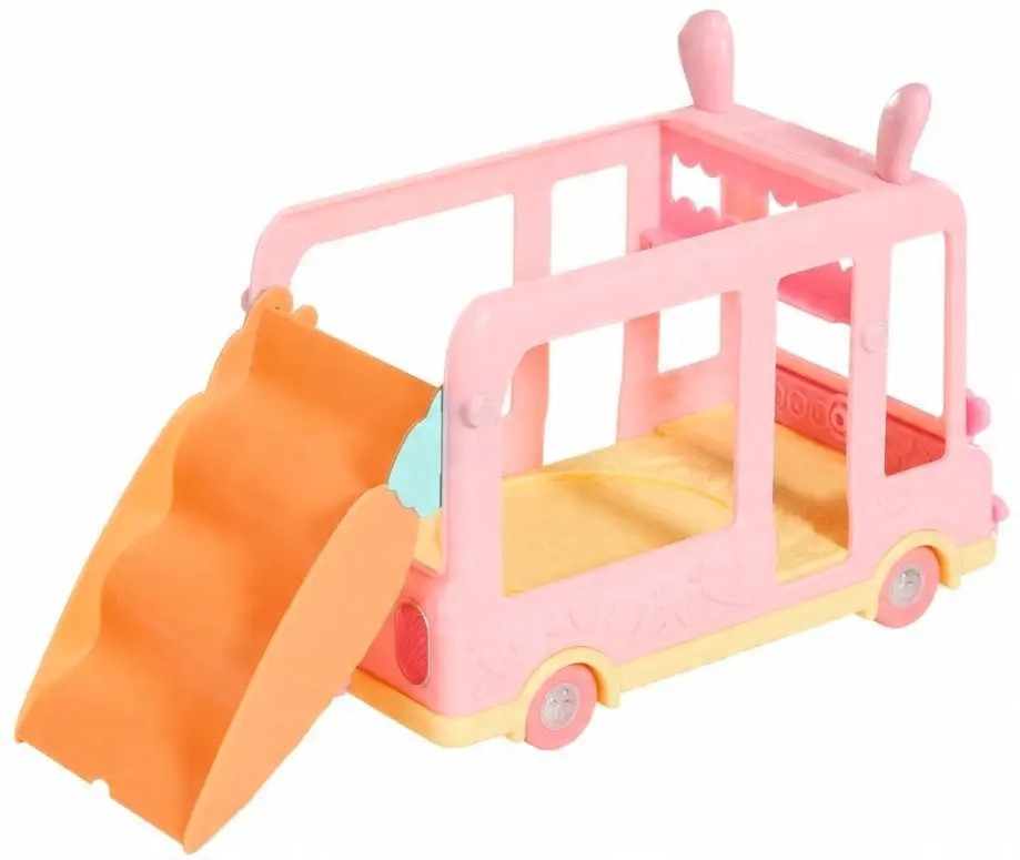 ✅ Автобус-сюрприз для малышей: розовый автобус, вмещающий более 20 малышей; У автобуса есть нос, заячий хвост, длинные уши и сиденья-морковки, а сиденья превращаются в тройные качели, коляску, карусель, горку или качели