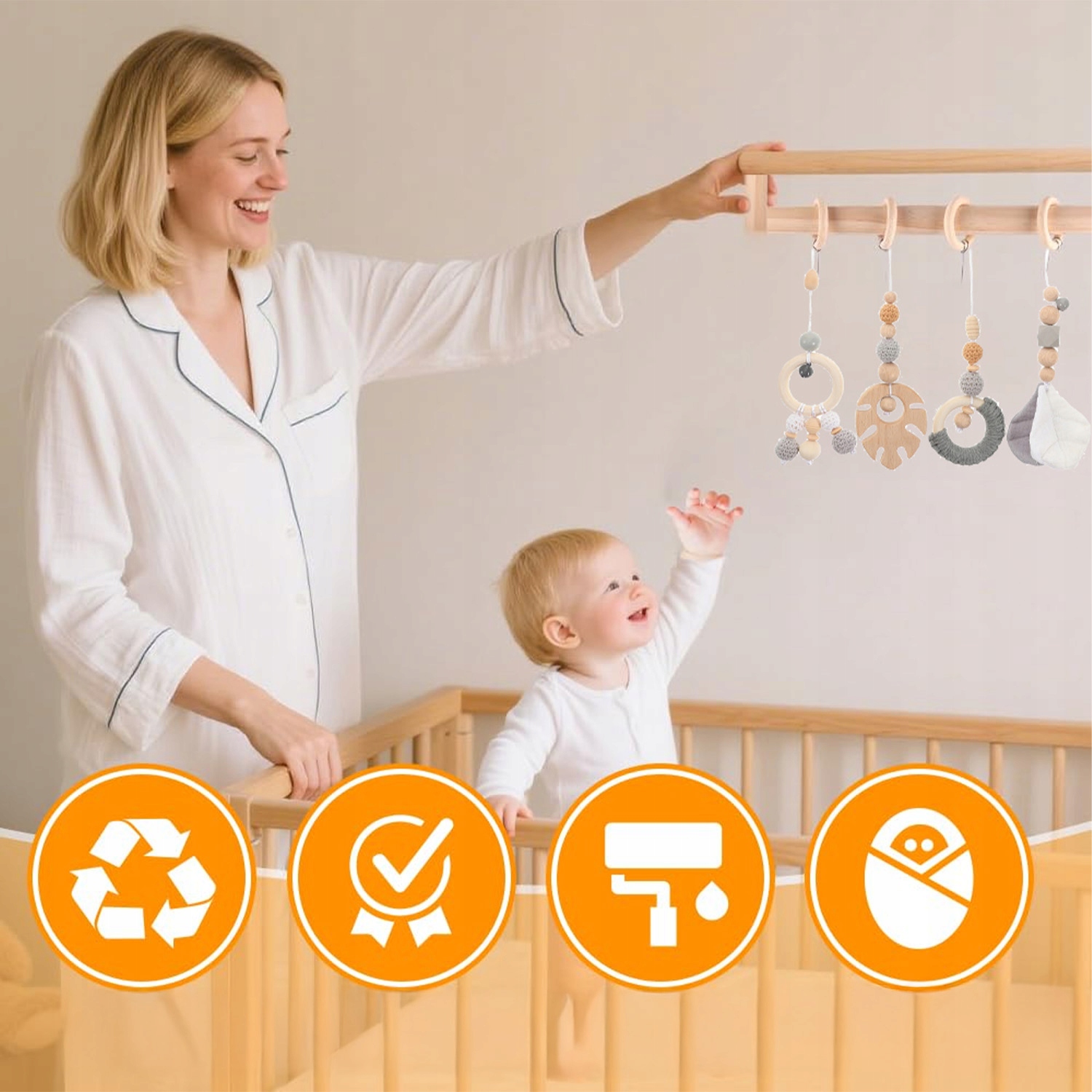 Подвеска - идеальный подарок для новорожденных и маленьких детей в возрасте от 0 до 24 месяцев. Это также идеальный подарок для друзей и семьи. Идеально подходит для детского душа, Рождества, Дня Благодарения, дней рождения и многого другого. Идеально подходит для любого дома, детской комнаты или гостиной.