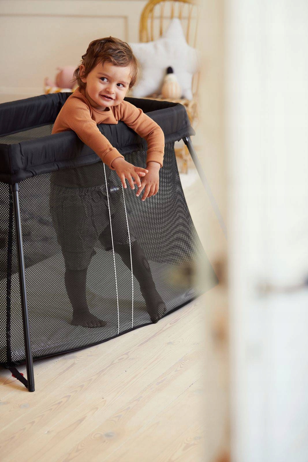 - Лучшая видимость Babybjörn туристическая кроватка из мягкой и воздушной сетки, которая позволяет ребенку свободно дышать, даже если лицо ребенка находится рядом с сторонами кроватки. Кроме того, сетка облегчает уход за ребенком. Они были протестированы и соответствуют стандартам сертификата Oeko-Tex 100 класса 1 и промывают в стиральной машине