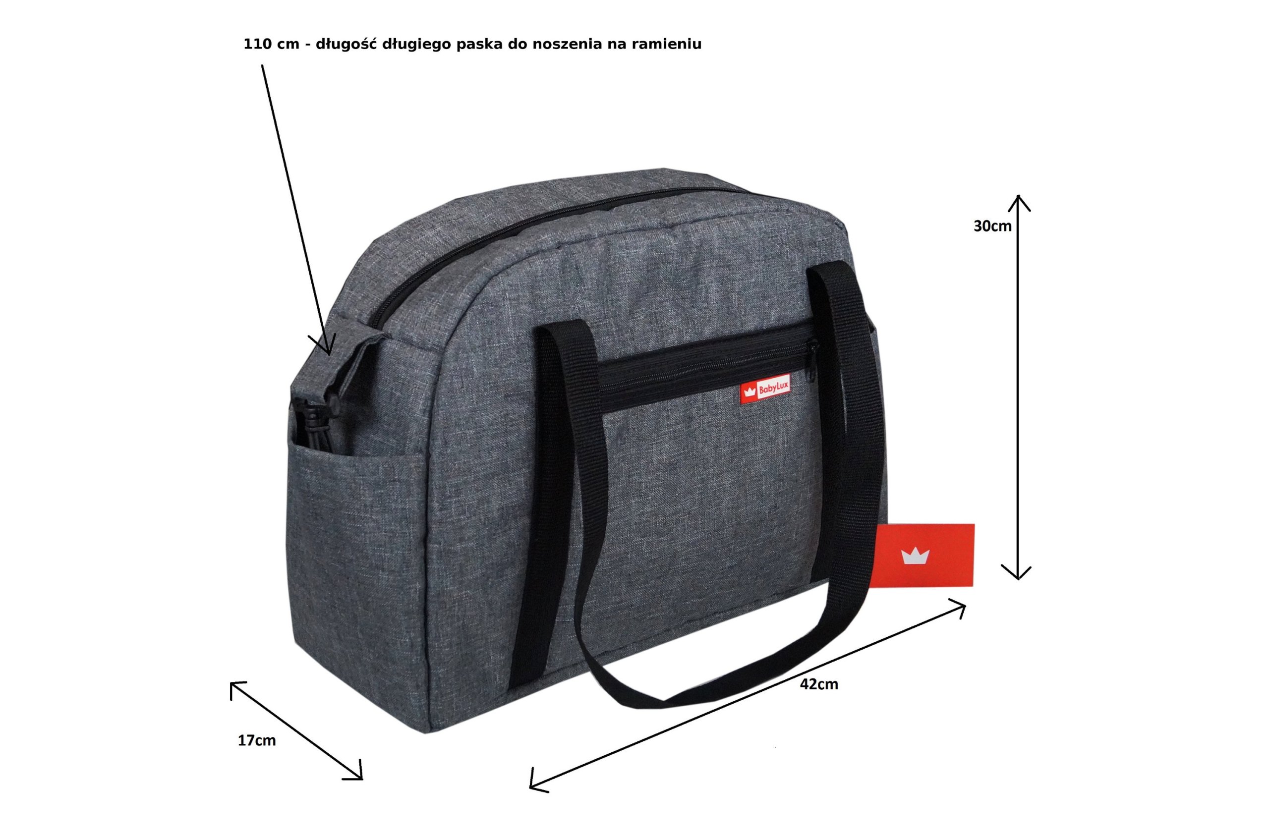 Современная, вместительная, практичная, добротная сумка, незаменимая во время повседневных прогулок и путешествий. Изготовлены из сертифицированных, пропитанных (водонепроницаемых) полиэфирных тканей льняного типа, используемых для производства детских колясок. Внутри черная водонепроницаемая подкладка, вся сумка укреплена пеной PUR. Сумка имеет большое основное отделение на молнии и 5 карманов. Один карман внутри сумки, снаружи: два боковых для бутылок, задний карман и передний карман на молнии для мелких аксессуаров и документов. Сумка оснащена длинным ремнем для ношения на плече и ушками для ношения на плече или в руке. Сумка имеет фиксаторы для крепления на коляску, оснащенные крючками, а также набор дополнительных ручек на липучке для установки на любую другую коляску, не оснащенную крючками для подвешивания сумки.