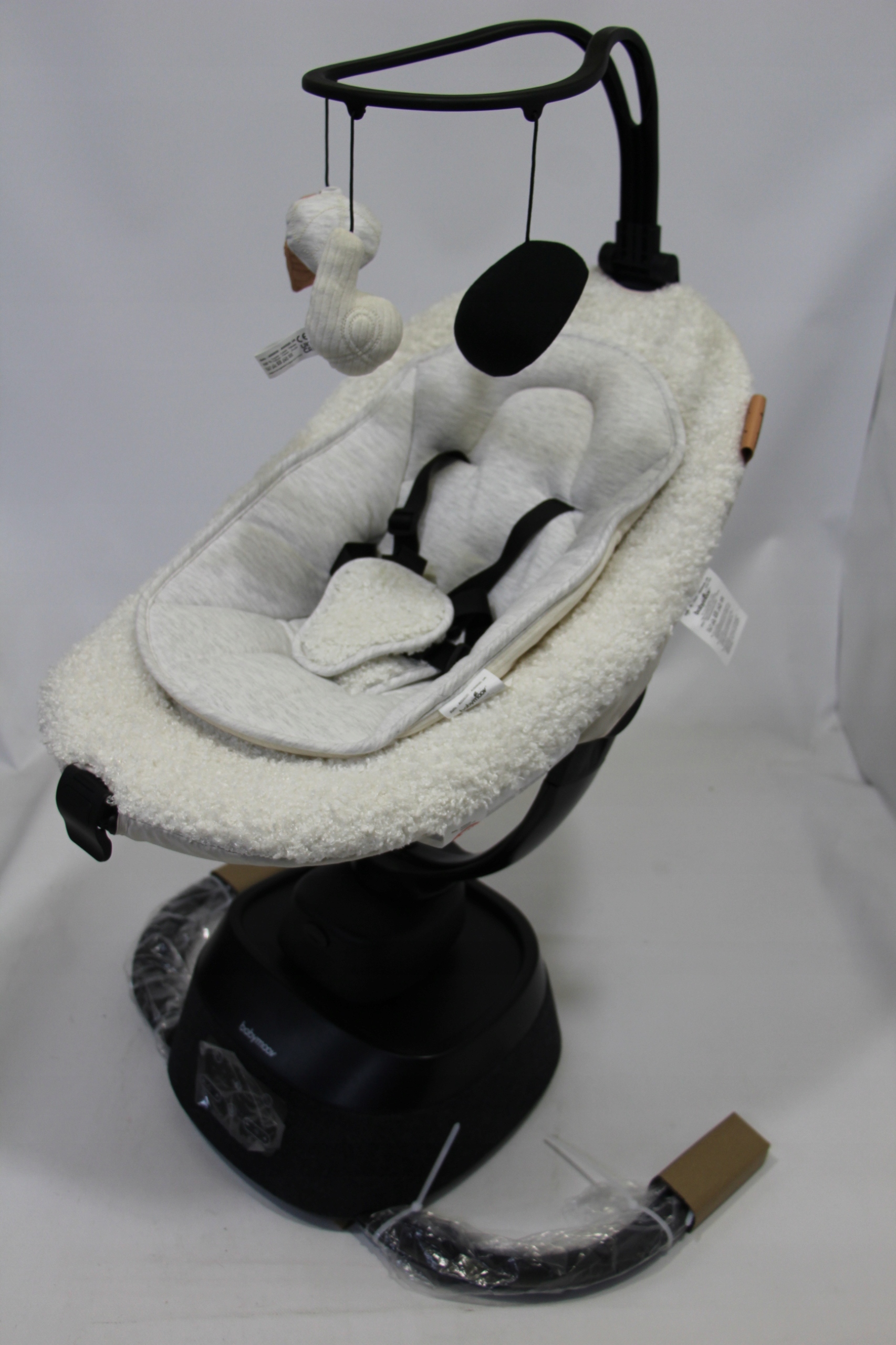 - Качалка оснащена оголовьем с подвесками, которые заинтересуют малыша.
