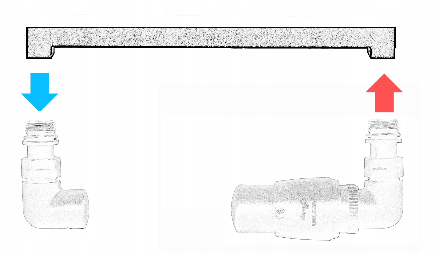 а) при подаче питания с левой стороны - выберите правый термостатический клапан Vision с овальными или прямоугольными комбинированными розетками (одиночные розетки не будут подходят друг к другу при соединении 50 мм)