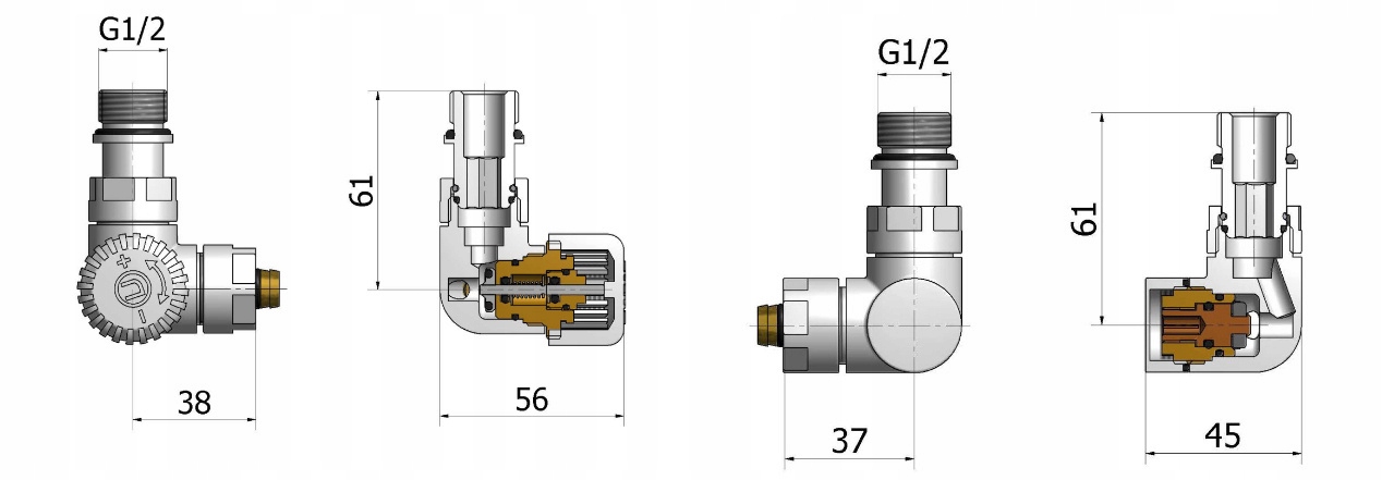 Ниже приведены описания, чертежи с размерами: термостатических и запорных клапанов Vision и размеры головки.