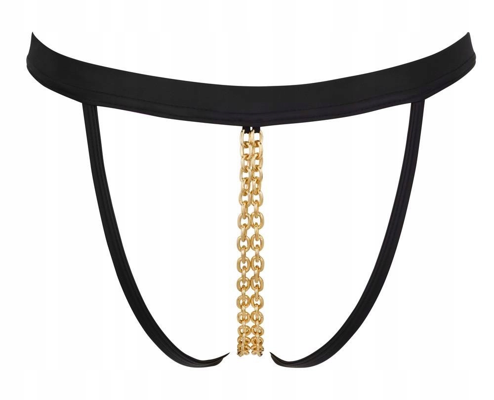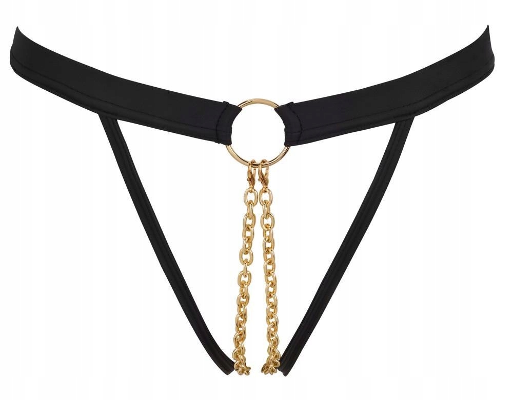 Трусики Bad Kitty из черных резинок модного матового цвета со стимулирующей двойной цепочкой в промежности золотого цвета, которые можно отстегнуть на переднем кольце. с двумя небольшими карабинами.