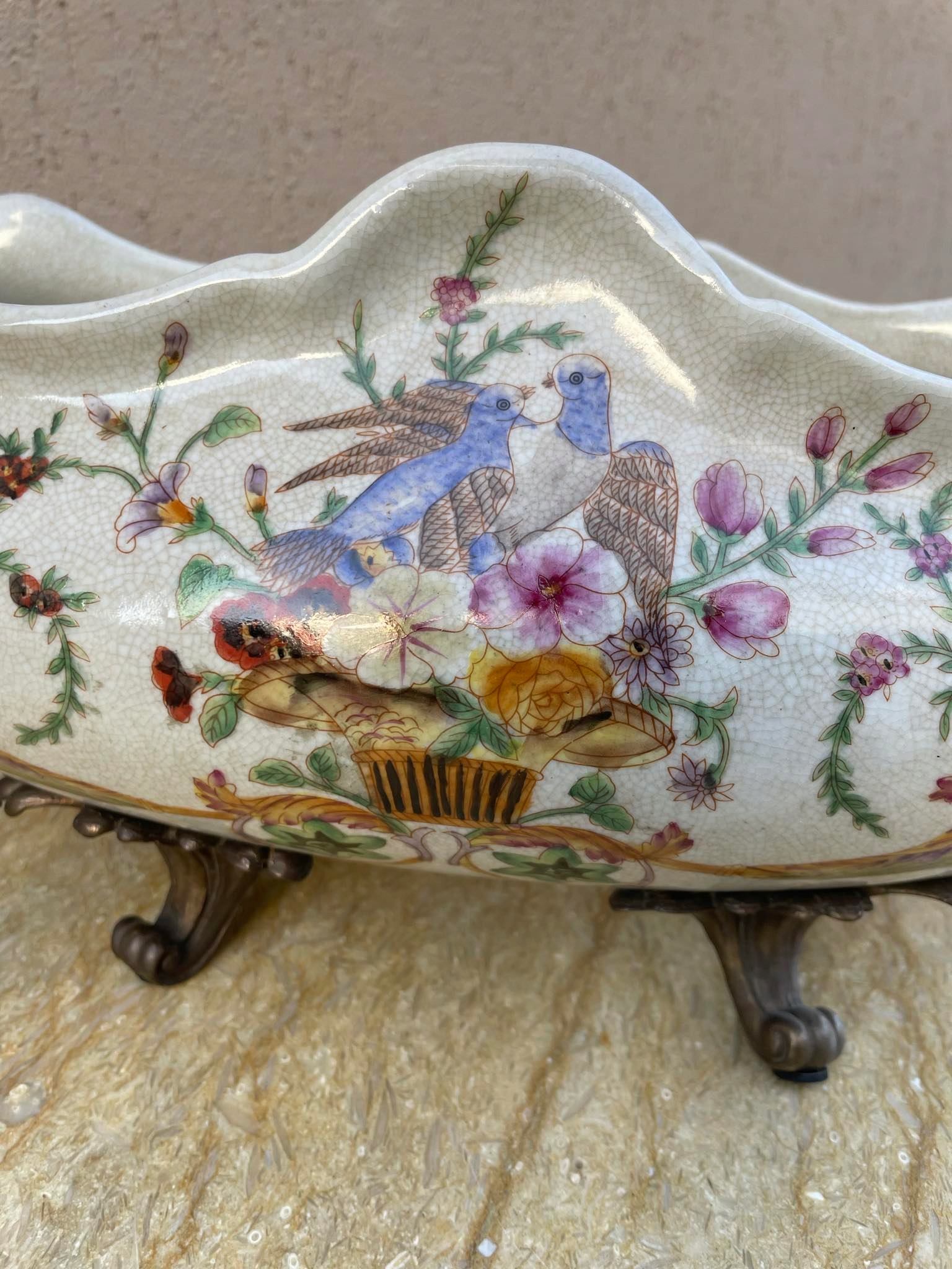 Предмет моего аукциона — КРАСИВАЯ БОЛЬШАЯ ТАРЕЛКА, ЧАША, ФАРФОРОВЫЙ ЖАРДИНЬЕ С КОРИЧНЕВЫМ