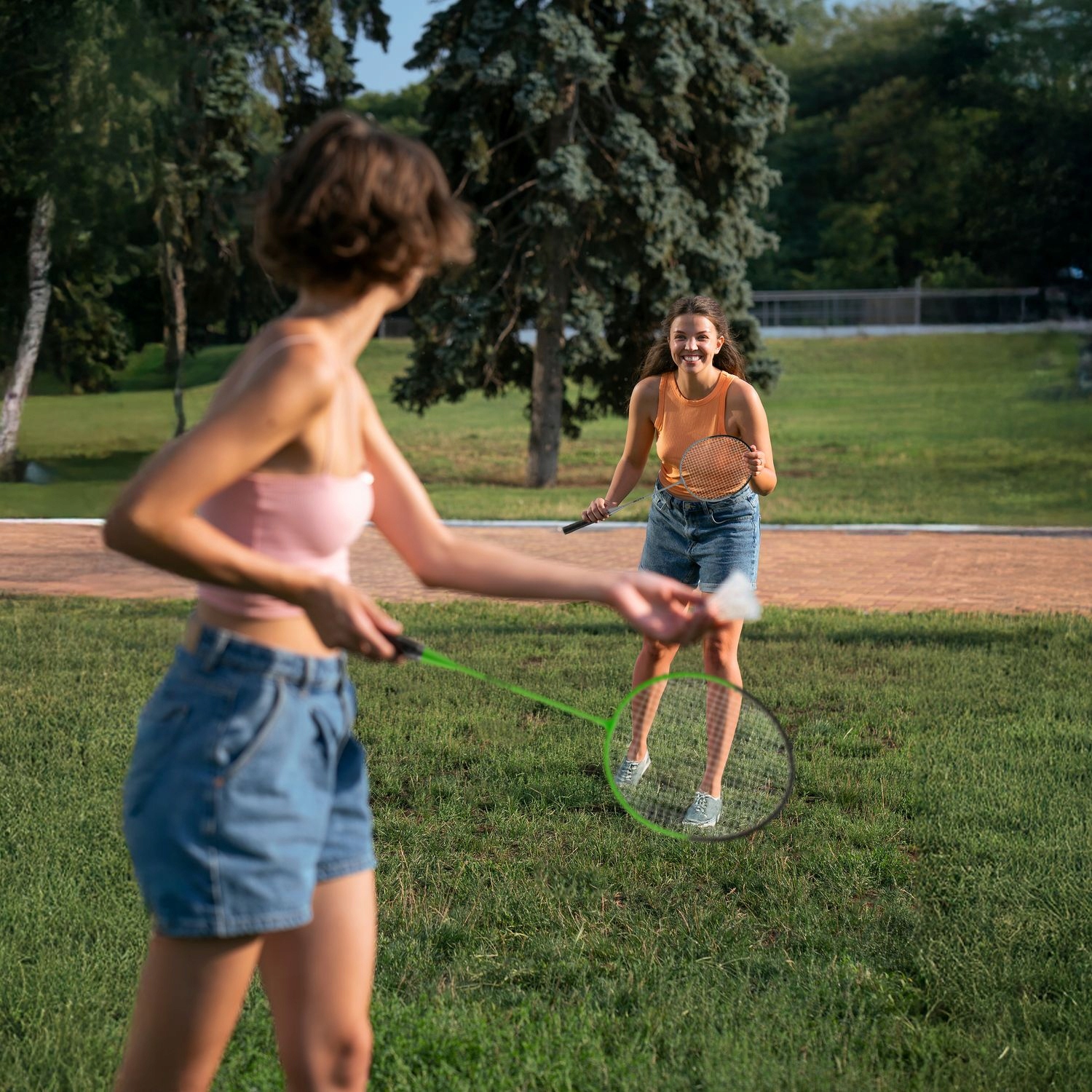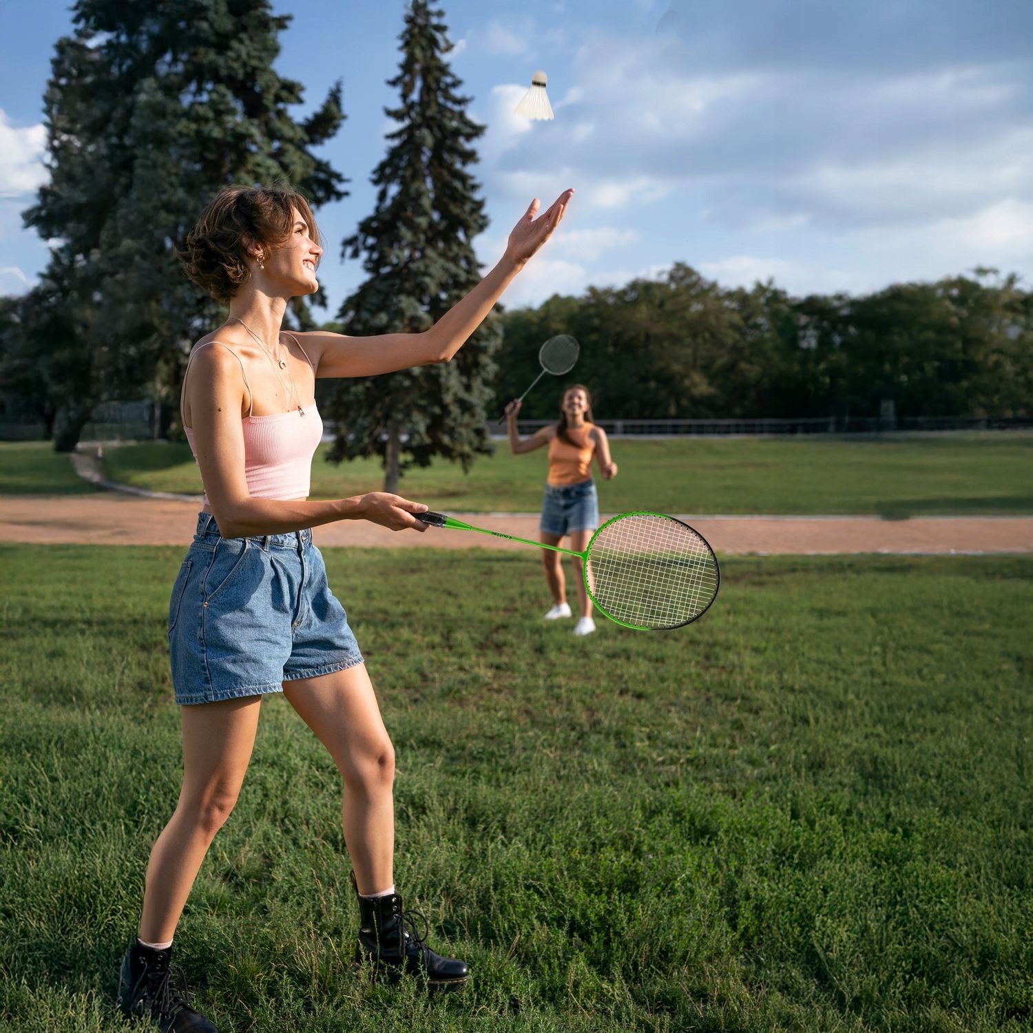 Набор для отдыха в бадминтоне является практическим решением для любителей активного отдыха. Он состоит из двух ракет и одного шаттла , так что вы можете начать играть сразу после распаковки - без необходимости покупать дополнительные аксессуары.