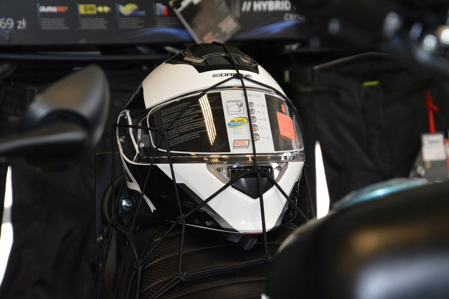 Универсальная мотоциклетная сетка типа «паук» для крепления различных аксессуаров. Изготовлен из гибких и прочных резиновых шнуров. Он имеет шестнадцать пластиковых крючков. Крючки обеспечивают надежное и устойчивое крепление. Идеально подходит для перевозки запасного шлема пассажира или багажа на кузове мотоцикла или квадроцикла.