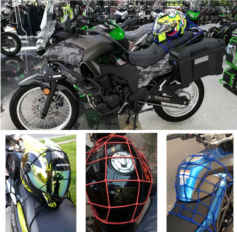 Сетка имеет 6 крепежных крючков, покрытых пластиком, поэтому они не царапают мотоцикл.