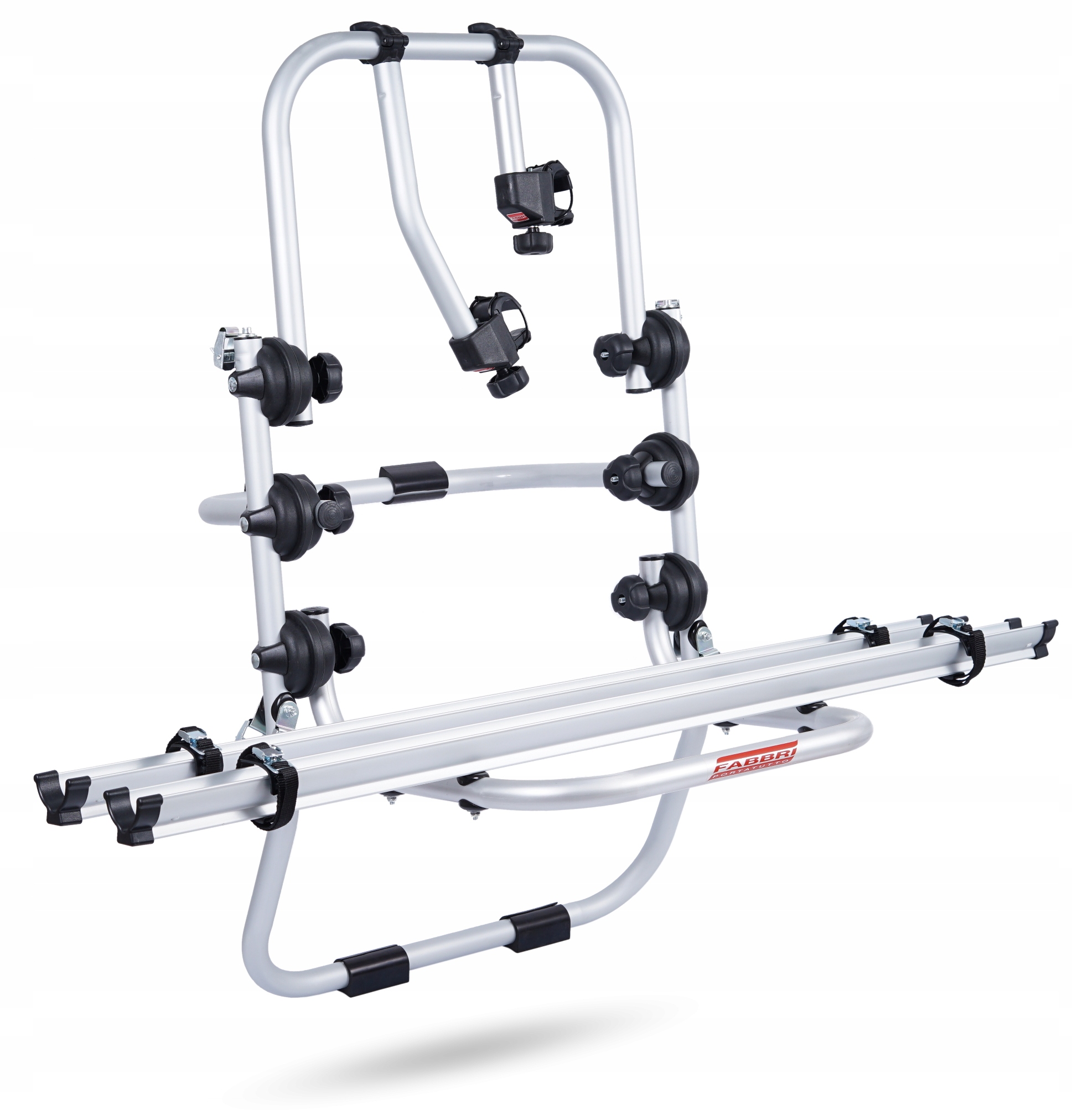 складывание , алюминий, итальянский ручка для транспортировки 2 велосипедов, установленных на крышке задней двери с 6 ремнями. Используемые решения позволяют безопасно транспортировать велосипеды о: